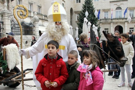 Sveti Nikola je danas uz pratnju Krampusa prodefilirao gradom. Naime, kočija s magarcem na čelu je jutros razveselila brojne male Zadrane, ali i one malo veće. Sveti Nikole je dijelio bombone, a Krampus je plašio zločestu djecu i upozoravao ih kako moraju slušati. Veselo je bilo na Polutoku, a kočija je privlačila pozornost i oduševljenje kod prisutnih. Sveti Nikola se zaustavio ispred katedrale Sv. Stošije gdje su mu djeca zapjevala pjesmu o njemu. Krampusa se nisu bojali jer su tijekom prethodne godine bili dobri, pa su zapjevali i njemu. Poslije su se zaputili na Narodni trg gdje su se nastavili fotografirati s djecom i darivati ih.