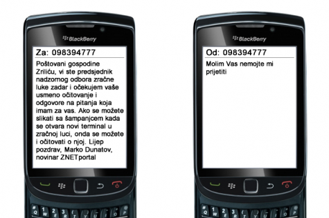 Nakon što je župan Zrilić odbio sve telefonske pozive, novinar Z NET-a šalje mu SMS poruku, sadržaja: