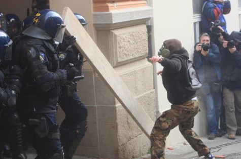 Oko 14.30 sati više stotina mlađih prosvjednika s Trga bana Jelačića uputilo se prema Markovom trgu kojega su okružile jake policijske snage. Po dolasku na barikade prosvjednici su počeli s bacanjem upaljača, baklji i boca na specijalnu policiju. Specijalci su uzvratili pendrečenjem prosvjednika u prvm redovima!