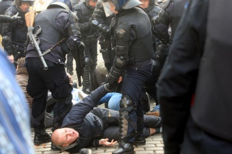Policija se nakon 20-ak minuta malo povukla, jer su prosvjednici počeli bacati cigle na njih. Pokušavali su se obraniti suzavcem i povlačenjem. No, vrlo brzo policija je krenula prema prosvjednicima i počela ih masovno pendrečiti. Potisnula ih je niže niz Radićevu ulicu! Izbio je veliki sukob između prosvjednika i policajaca! Među ozlijeđenima su i novinari među kojima i naša ekipa kao i novinari Nacionala, net.hr, HTV-a te Nove TV. Neki su dobili pendrekom po glavi a neki su stradali od kamenja koji su bacali prosvjednici.