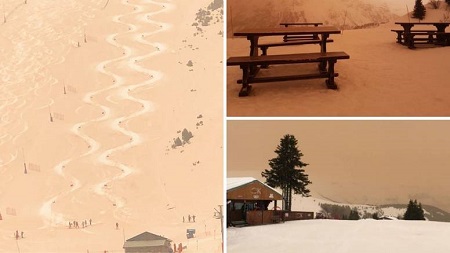 Zahvaljujući povoljnom smjeru vjetra i niskom tlaku, velika količina saharske prašine stigla je preko Sredozemnog mora u Europu. Proteklih godina lovci na oluje često su registrirali ovu pojavu, poznatu i kao blatna ili krvava kiša, u obalnim područjima Hrvatske, no danas je zabilježena i u švicarskim Alpama, što je fotografe nadahnulo na snimanje fascinantnih fotografija pijeska pomiješanog sa snijegom.