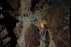 Već pri prvom istraživanju topografski je snimljeno preko 500 metara špilje. Za gornji ulaz potrebno je uže. Nakon 40-tak m kanala dolazi se na jamu dubine 20 metara. U nastavku je pri istraživanjima glavnih dijelova špilje potrebna užad za penjanja (dva užeta od 30 metara i dva od 10 metara). Prva tri penjanja je odradio Alan Kovačević i postavio užad, a četvrto i najzahtjevnije Gordan Polić. Nakon više neuspjelih pokušaja svih članova ekipe, Gordan slobodnim penjanjem uspijeva popeti 14 m visoku prepreku do ulaza u stijeni i nastavka kanala. Postavljeno je uže. Od tog dijela nastavak špilje više nije razgranat kao u donjem dijelu iako ima manjih bočnih kanala. U sljedećim akcijama nastavljeno je topografsko mjerenje i crtanje špilje. U tom poslu pridružili su se i drugi speleolozi iz DDISKF-a, SKS-a, HBSD-a i SOŽ-a.