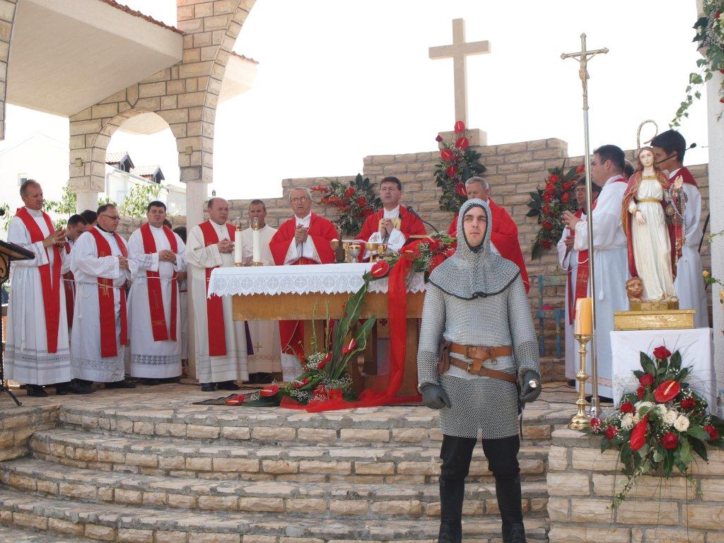Koncelebrirano misno slavlje u 11,00 sati za vanjskim oltarom u parku svetišta predvodi mons. Jure Bogdan, vojni ordinarij u RH. Mise su još u 7 i u 9 sati, a u 18,00 sati je misa s blagoslovom djece.