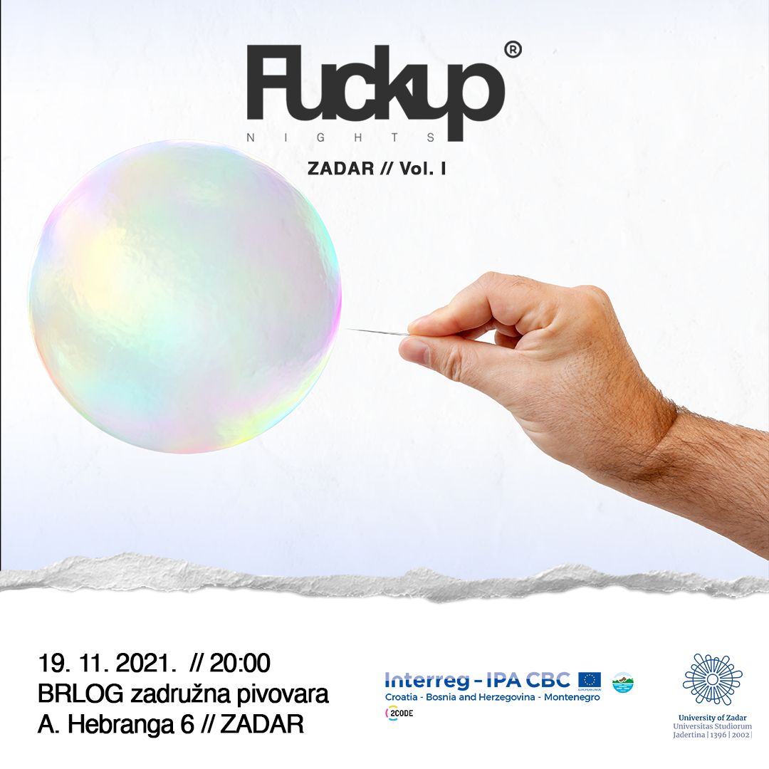 Fuckup Nights Zadar niz je lokalnih događaja ovog globalnog brenda kroz koje se prenose zanimljive priče o osobnim, profesionalnim i/ili poslovnim pogreškama/neuspjesima iz kojih su naši naši gosti u pravilu izašli iskusniji, snažniji i odlučniji.