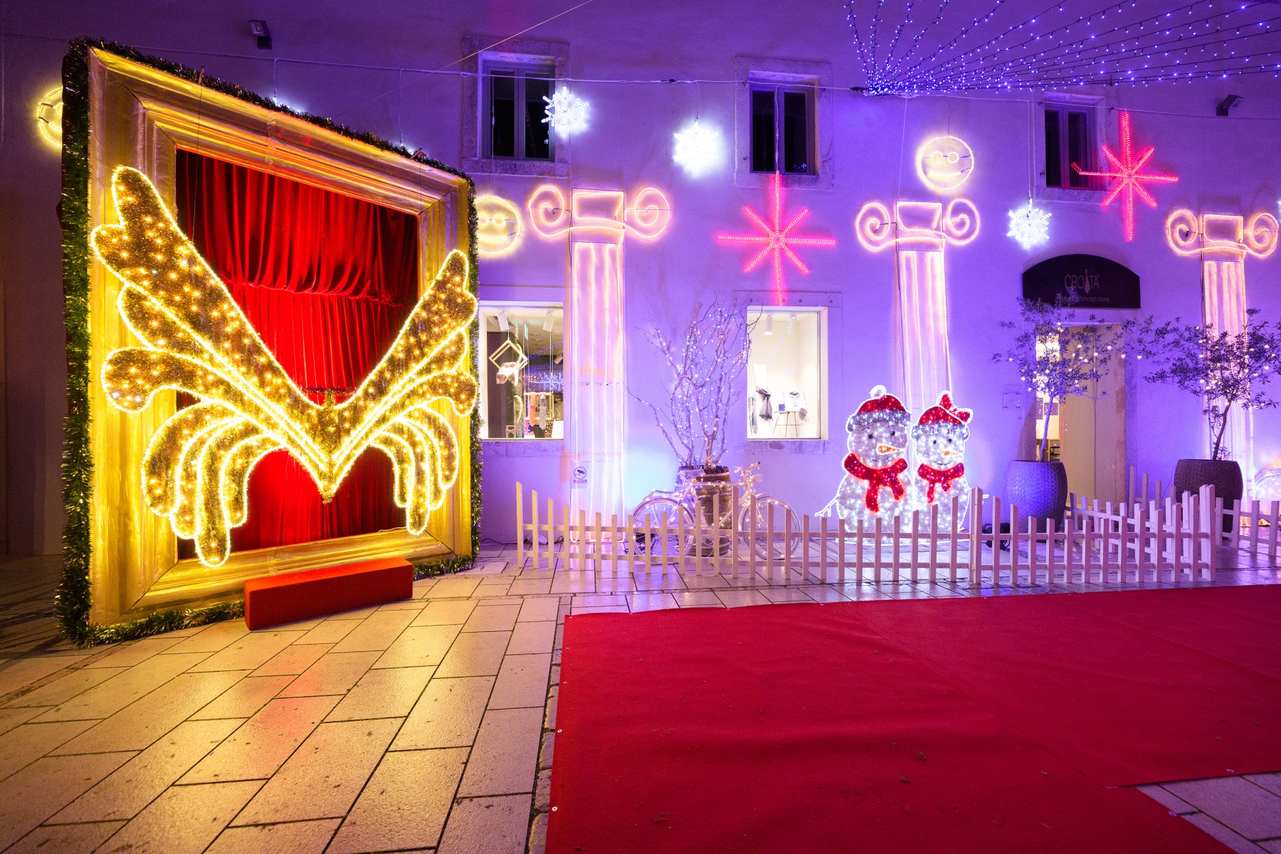 U atriju palače Cedulin možete doživjeti pravu zimsku bajku! U čarobnim ukrasima i tisućama lampica jednako će uživati i djeca i odrasli.