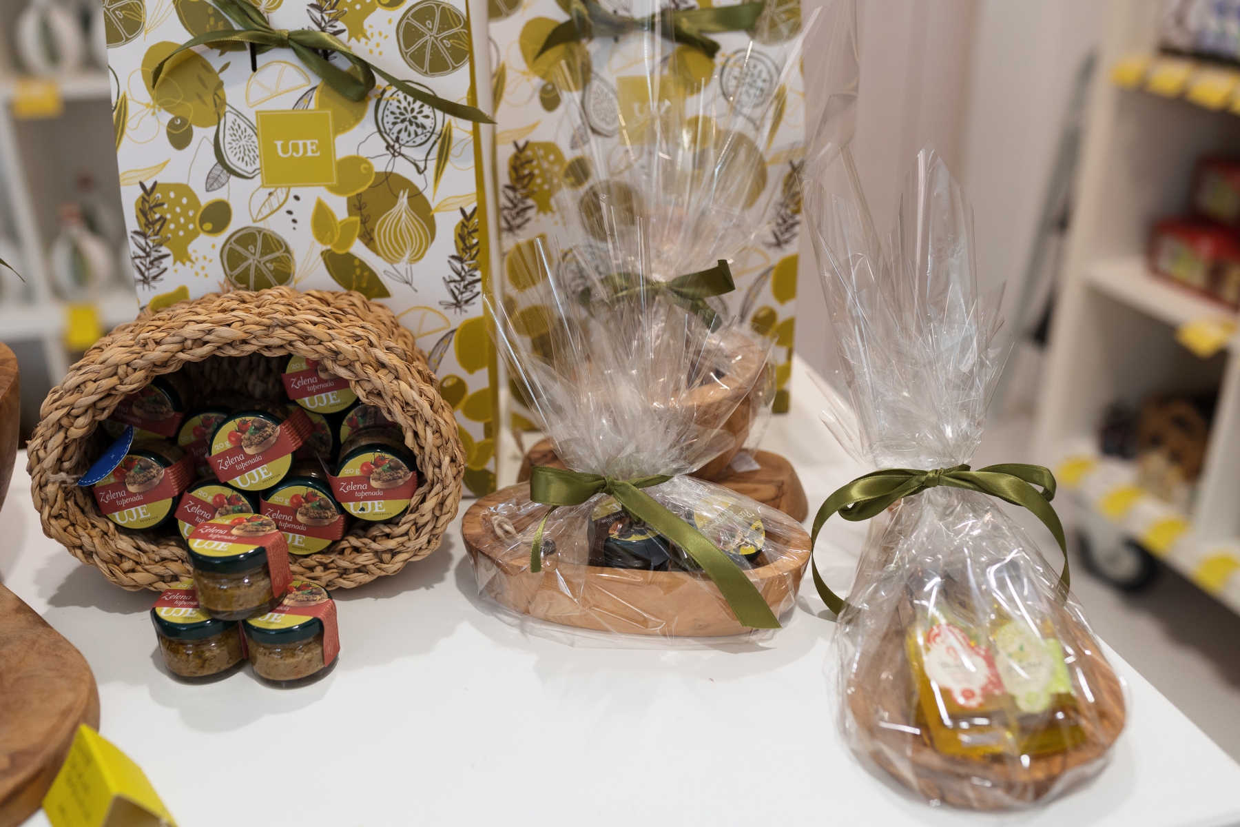 Mogu se kombinirati pokloni sastavljeni od maslinovog ulja s voćnim džemovima u manjem i većem pakiranju. Preporučamo prekrasno dizajnirane keramičke boce s maslinovim uljem koje imaju i vlastitu ambalažu kao i posebne poklon-vrećice. Jedna od zanimljivih kombinacija koja se dosta kupuje je ona od džema od suhih smokva i maslinovog ulja, a mogu se upakirati po vašoj želji. Postoje i gotove kombinacije ulja u kutijama, s dvije ili pet boca, aromatiziranih tartufima, bijelim lukom, chillijem, origanom, bosiljkom i limunom.