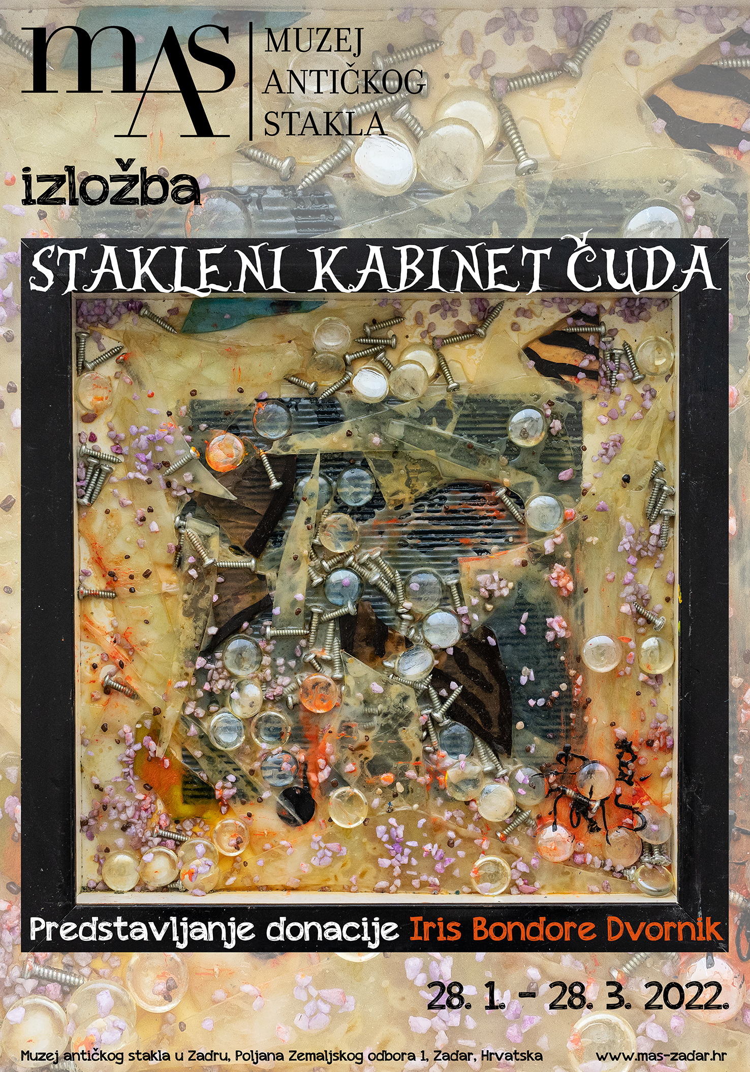 Od 28. siječnja do 28. ožujka – Izložba u maloj dvorani Muzeja antičkog stakla u Zadru povodom održavanja 17. Noći muzeja 2022. i virtualna izložba na www.mas-zadar.hr od 28. 1. 2022.