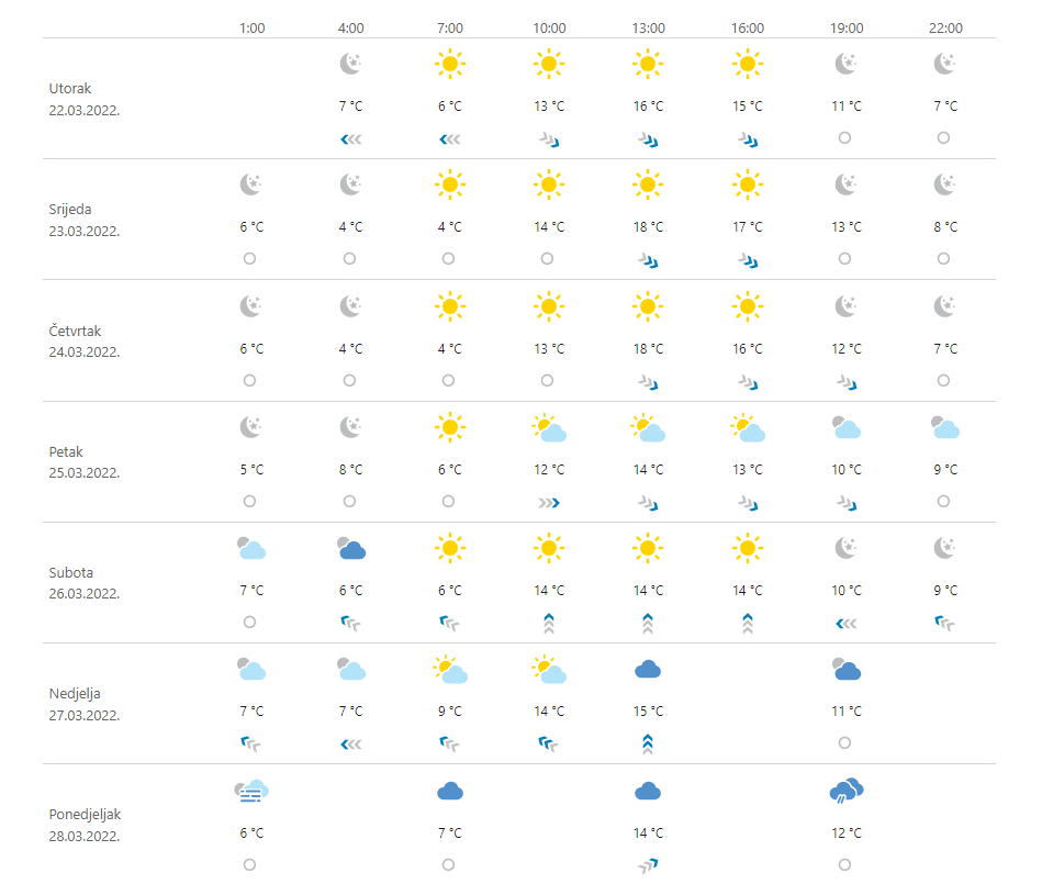 PROGNOZA Burno i dalje, sunčano i temperature do 20 °C. Za kraj tjedna jugo, pa kiša?