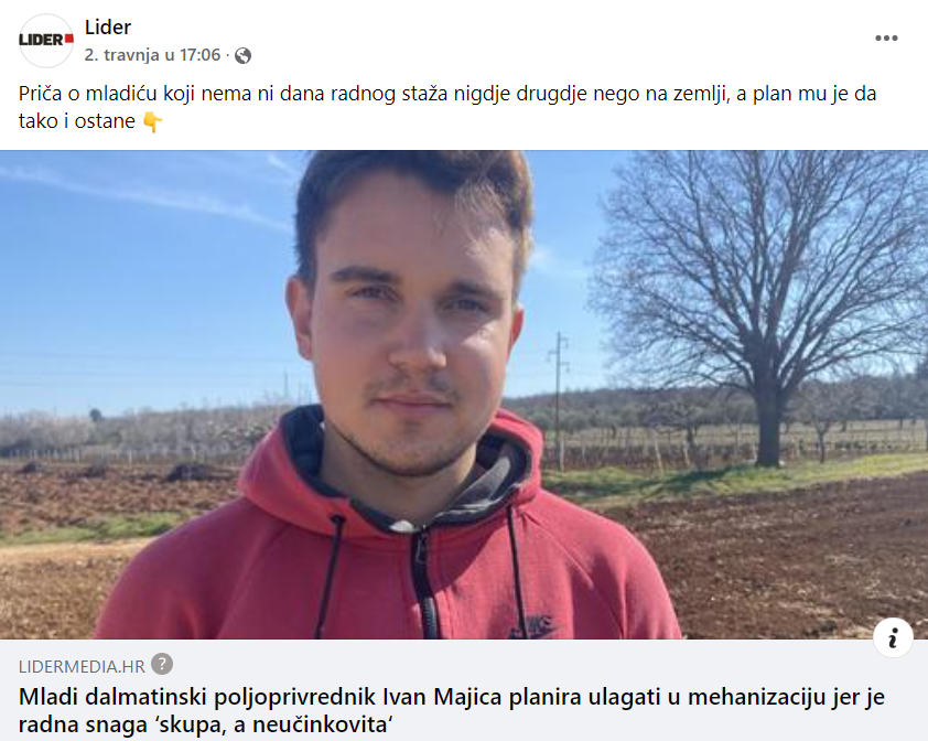 LIJEPA PRIČA IZ SV. FILIPA I JAKOVA: Mladi poljoprivrednik Ivan Majica (23) planira ulagati u mehanizaciju jer je radna snaga “skupa, a neučinkovita”