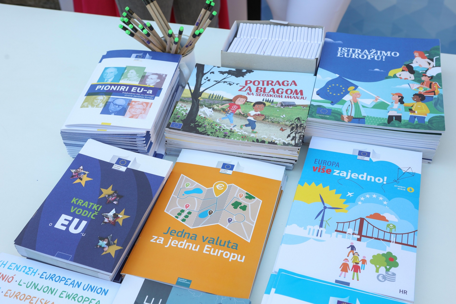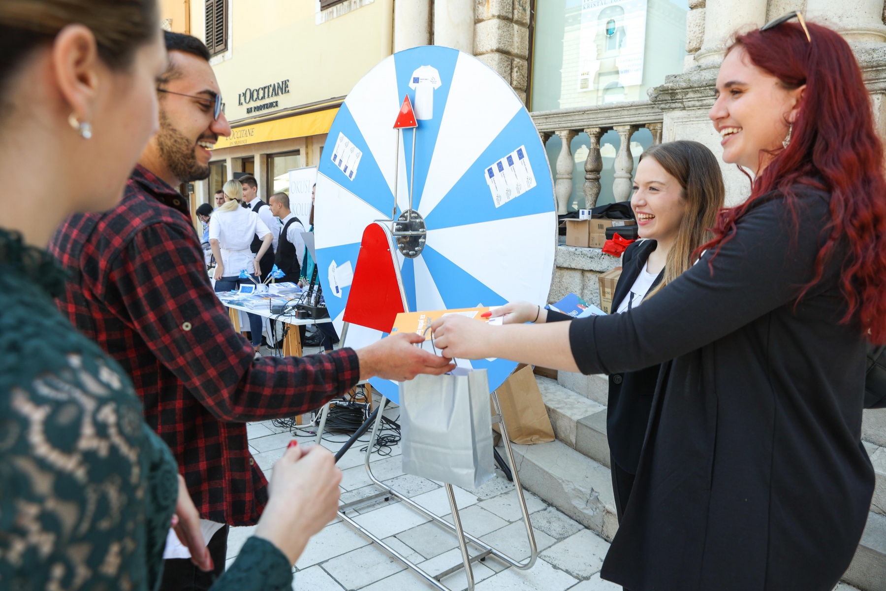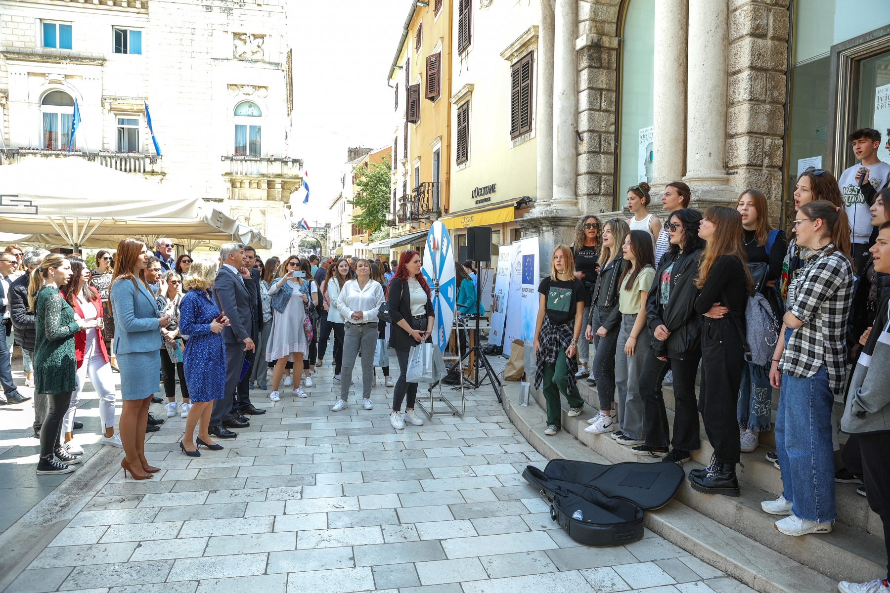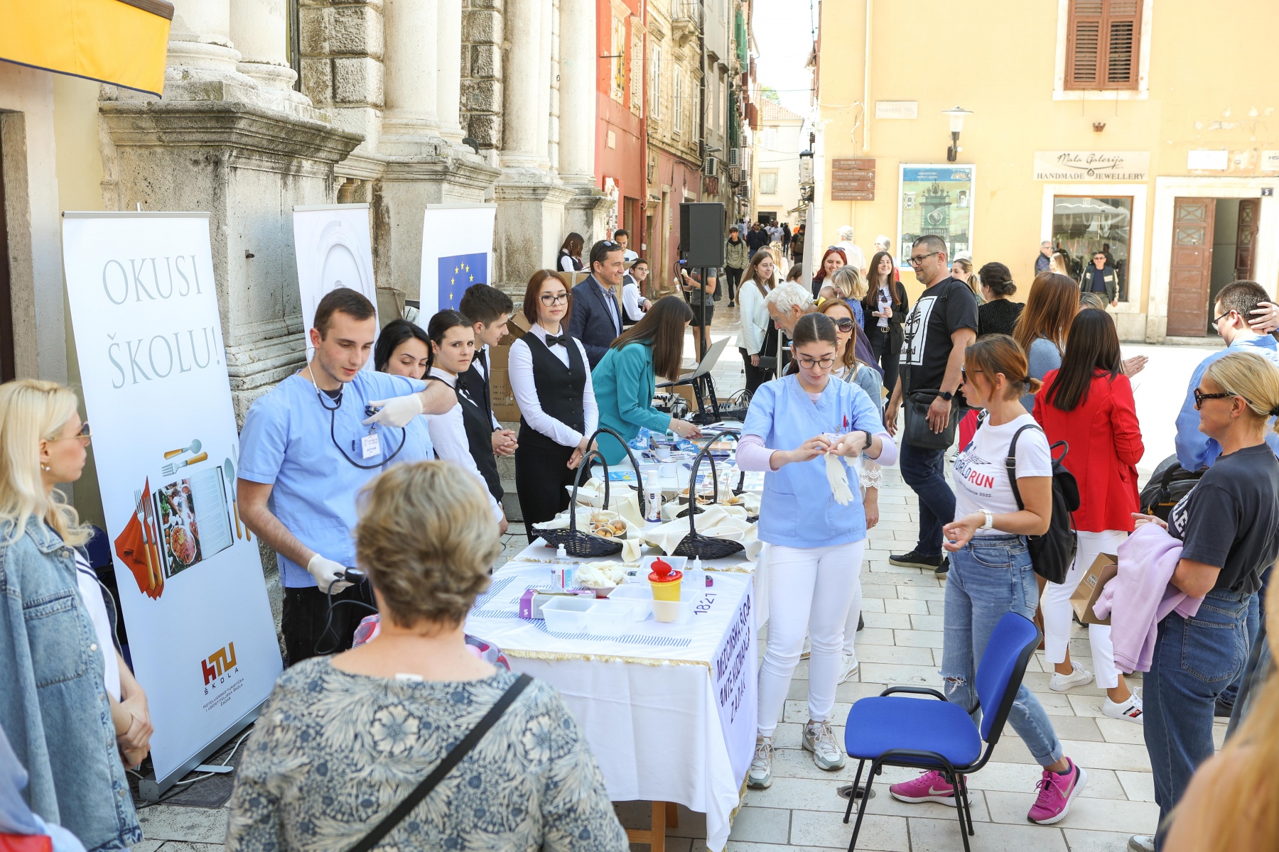Učenici iz škola ambasadora Europskog parlamenta i tim centra EUROPE DIRECT Zadar građanima su dijelili EU publikacije te prigodne poklone i iznenađenja, a posjetitelji su se mogli okušati i u „kolu sreće“. Kod učenika Medicinske škole Ante Kuzmanića Zadar posjetitelji su tako mogli izmjeriti tlak i glukozu u krvi, ali i osladiti se domaćim fritulama i kroštulama koje su pripremili učenici Hotelijersko turističke i ugostiteljske škole Zadar.