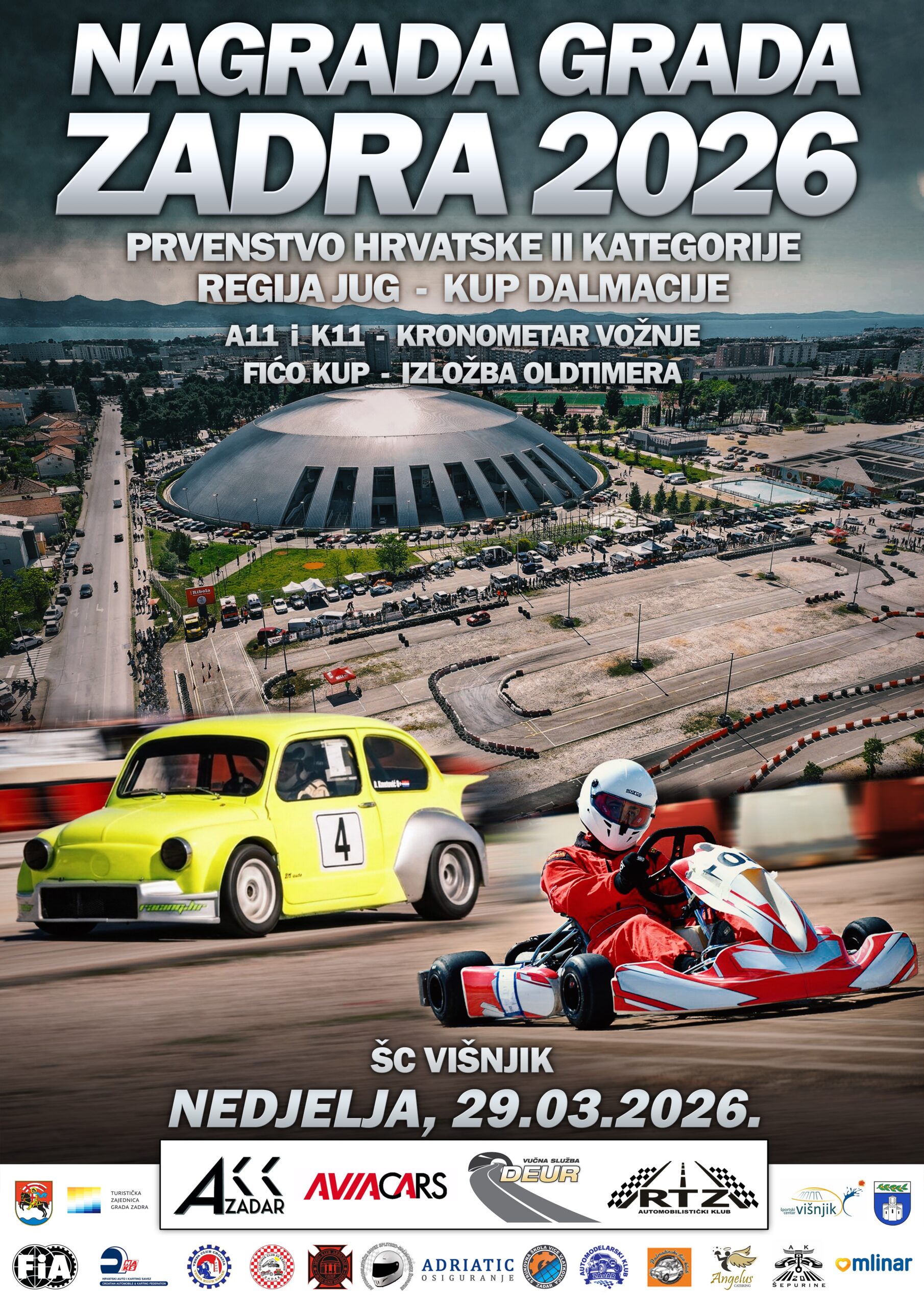 Natjecanje kronometar vožnji za aute i kartinge, A11 i K11, održat će se u krugu športskog centra Višnjik, parkiralište sjever i bodovati će se za Prvenstvo Regije JugKUP DalmacijeDalmatinski Fićo KUP kao i KUP AKK Zadra, te izložbu oldtimer vozila i kamiona u krugu dvorane.