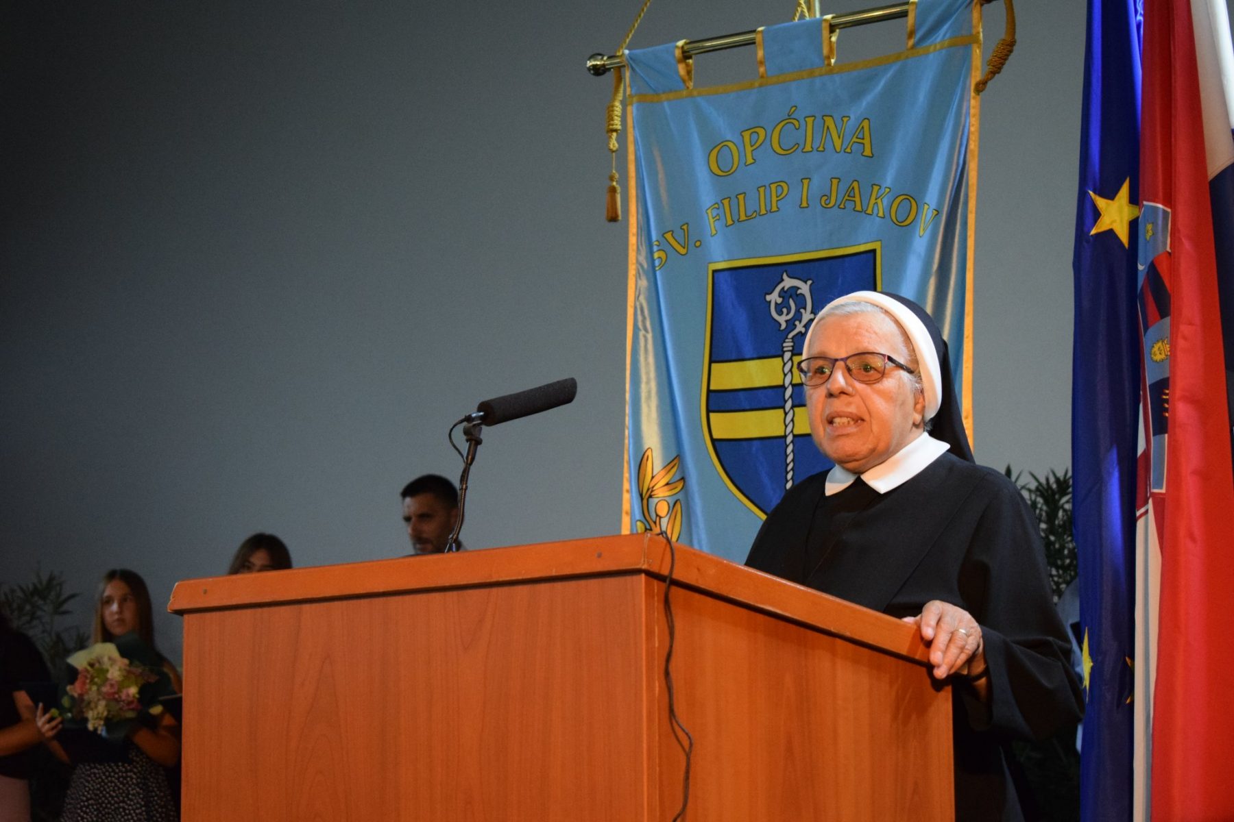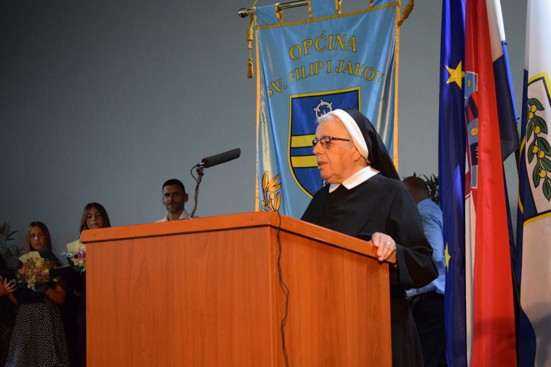 “Obratio bi se dobitnicima općinskih nagrada, hvala vam na izvrsnosti jer pojedinac ili timovi izvrsnih čine razliku da li će društvo ići naprijed. A u ovoj godini ti ljudi koji čine razliku su, obrazovanje – naši osnovnoškolci Cvita Baričić, Maja Pedisić, Luka Kadija, Marijeta Katalinić, Luca Pelicarić, Anđela Srdarović, Karlo Colić, Taša Rogić, šport Denis Galešić – boćanje, poljoprivreda – Ivan Majica, očuvanje kulturna baština – Mihovilka Prtenjača i Katica Eškinja i očuvanje katoličke vjere – zlatni grb naše časne, sestra Branimira Prcela, sestra Ladislava Kamber i sestra Rajka Kamber. Od srca hvala svima vama”, rekao je Zoran Pelicarić, načelnik Općine Sv. Filip i Jakov.