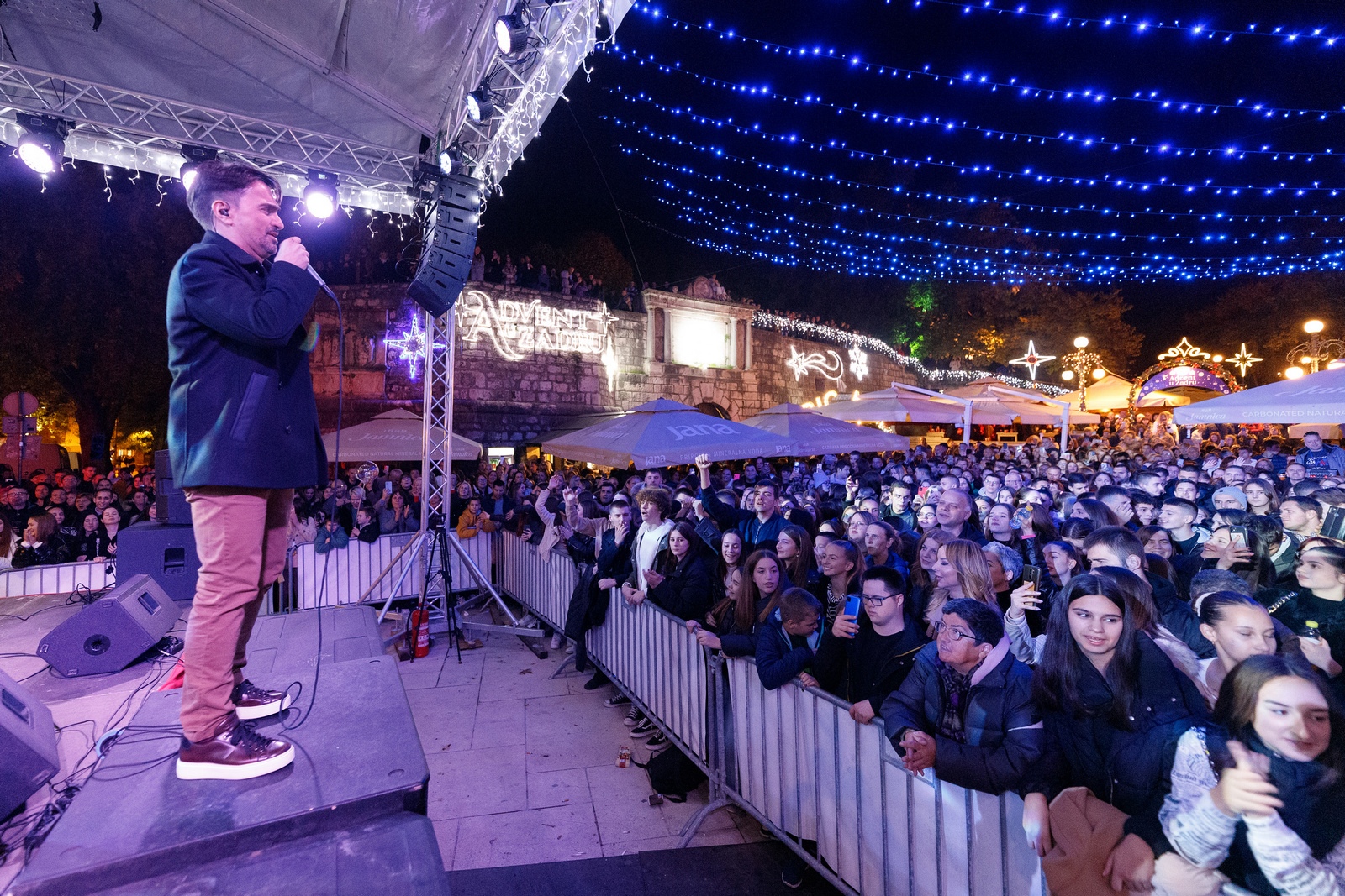 Nakon spektakularnog otvaranja s koncertom Dalmatina, Advent u Zadru sinoć je nastavljen ništa manje posjećenim nastupom Jole i njegovog pratećeg benda Bolero. Već oko 20 sati bilo je jasno da će adventski trg biti ispunjen do kraja, ovog puta nešto mlađom publikom nego prethodne večeri.