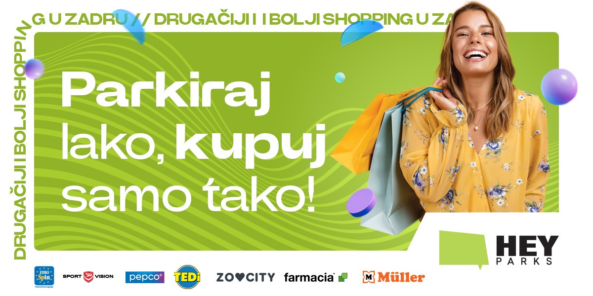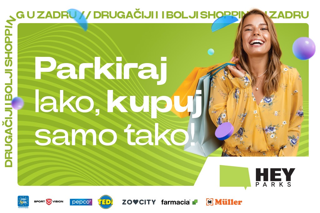 Svi oni koji cijene svoje vrijeme i novac, a kupovinu žele obaviti brzo i efikasno u Hey Parku Zadar doći će na svoje. Ovdje se kupuje bez gužve i gnjavaže budući da svaka trgovina ima zaseban ulaz izravno s parkinga te više nije potrebno obići cijeli trgovački centar da bi se obavila jedna kupnja.