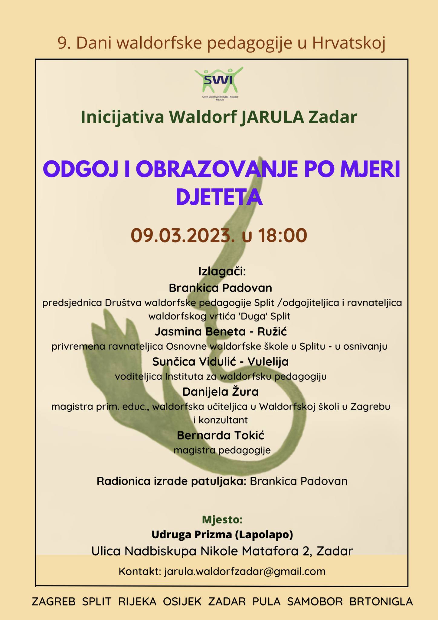 Okrugli stol organizira Inicijativa za waldorfsku pedagogiju „Jarula”, mlada i tek osnovana inicijativa koja, ovom prilikom, u Zadar dovodi vrsne i školovane waldorfske pedagoge.