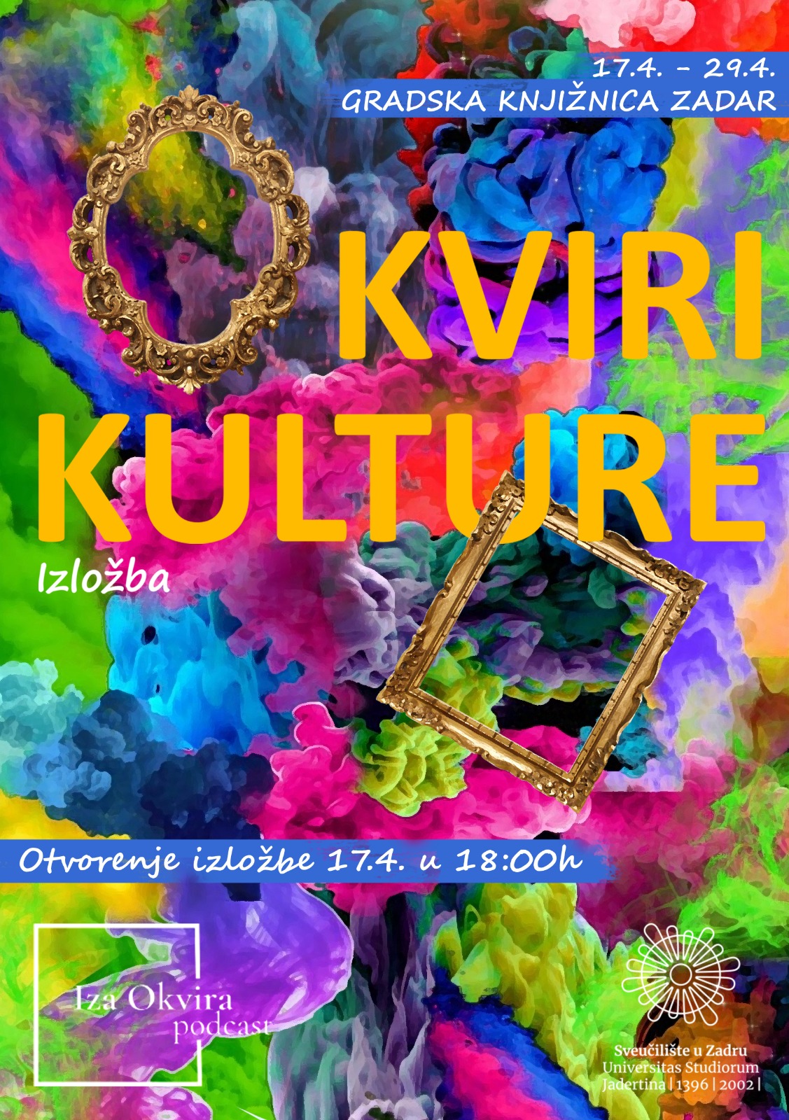 Ivan Franko i Karla Mihaljević (MihaTheTrash) u sklopu svojega podcasta “Iza Okvira” održavaju izložbu fotografija i likovnih radova pod nazivom “Okviri kulture”.