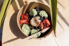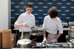 Ručno izrađeni rezanci, garavi od crnila sipe, s tartarom od brancina, kremom od biža, jagodama i temeljcem od rakova bili su glavno jelo cooking showa učenika zadarske Hotelijersko-turističke i ugostiteljske škole, koje je vodio njihov profesor Robert Pinto.