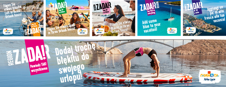 Glavna ovogodišnja promotivna kampanja Turističke zajednice Zadarske županije i partnera usmjerena je prvenstveno stvaranju prepoznatljivosti destinacije i jačanje turističkog brenda „Zadar Region“. Koristi se glavni slogan “Say YES! to Zadar Region!, Say YES! to everything!” uz razne verzije poziva poput „Dodajte plavetnilo/svježi zrak svome odmoru!“ a provodi se na 12 tržišta i u suradnji s vodećim medijskim kućama poput austrijskih Kronen Zeitunga i Der Standarda, francuskog Le Figaroa te britanskog Telegrapha.