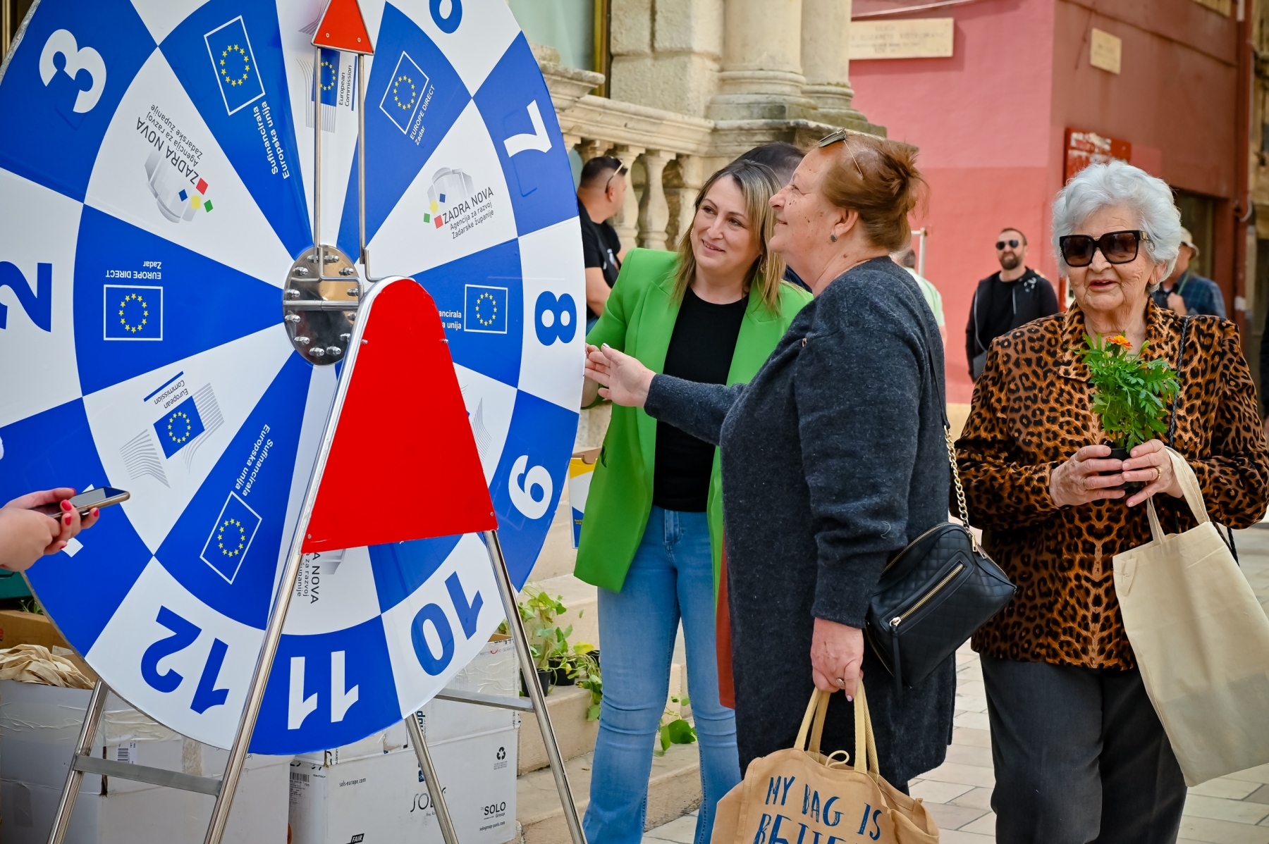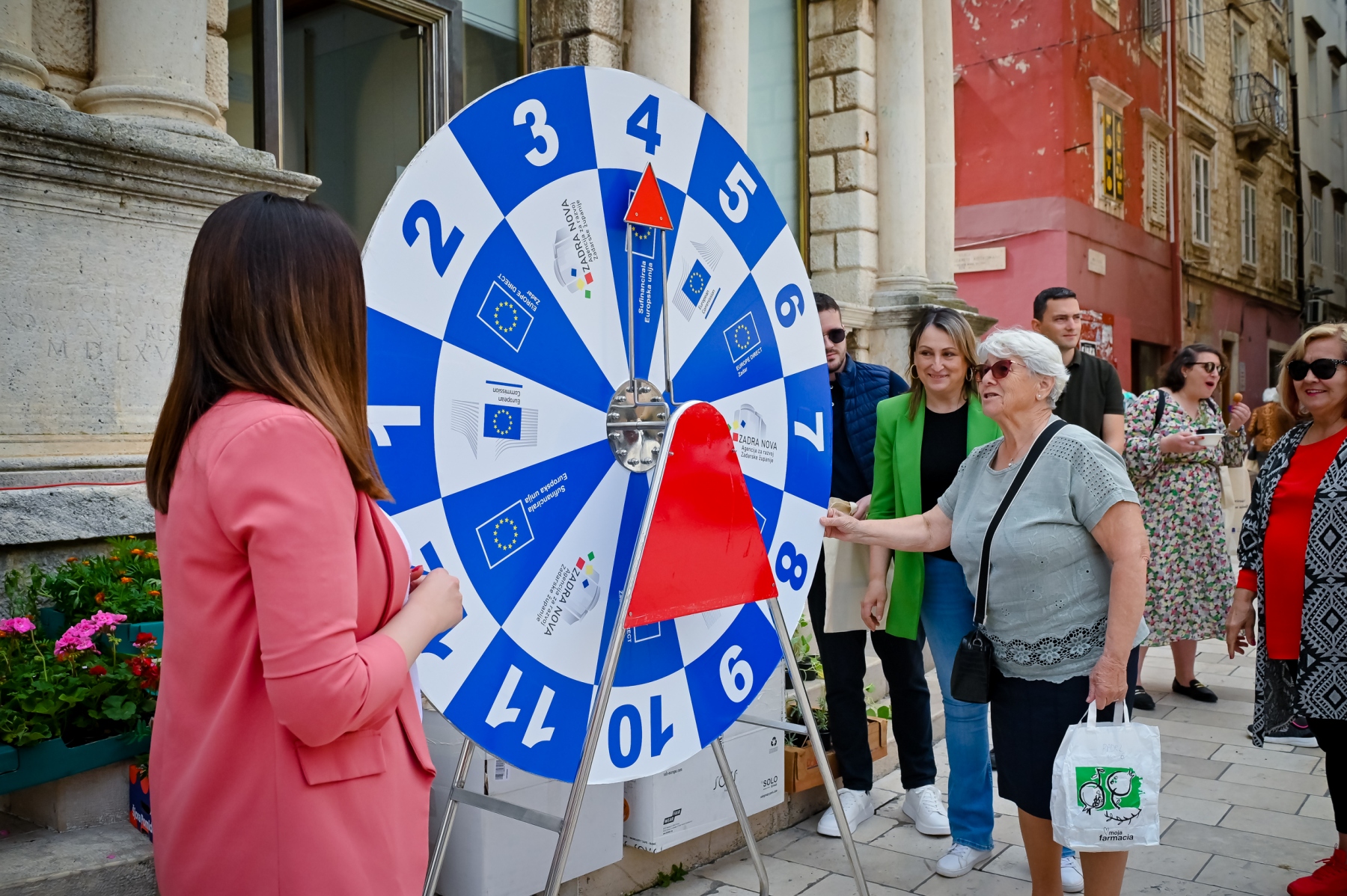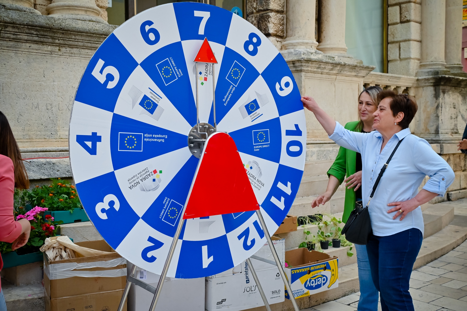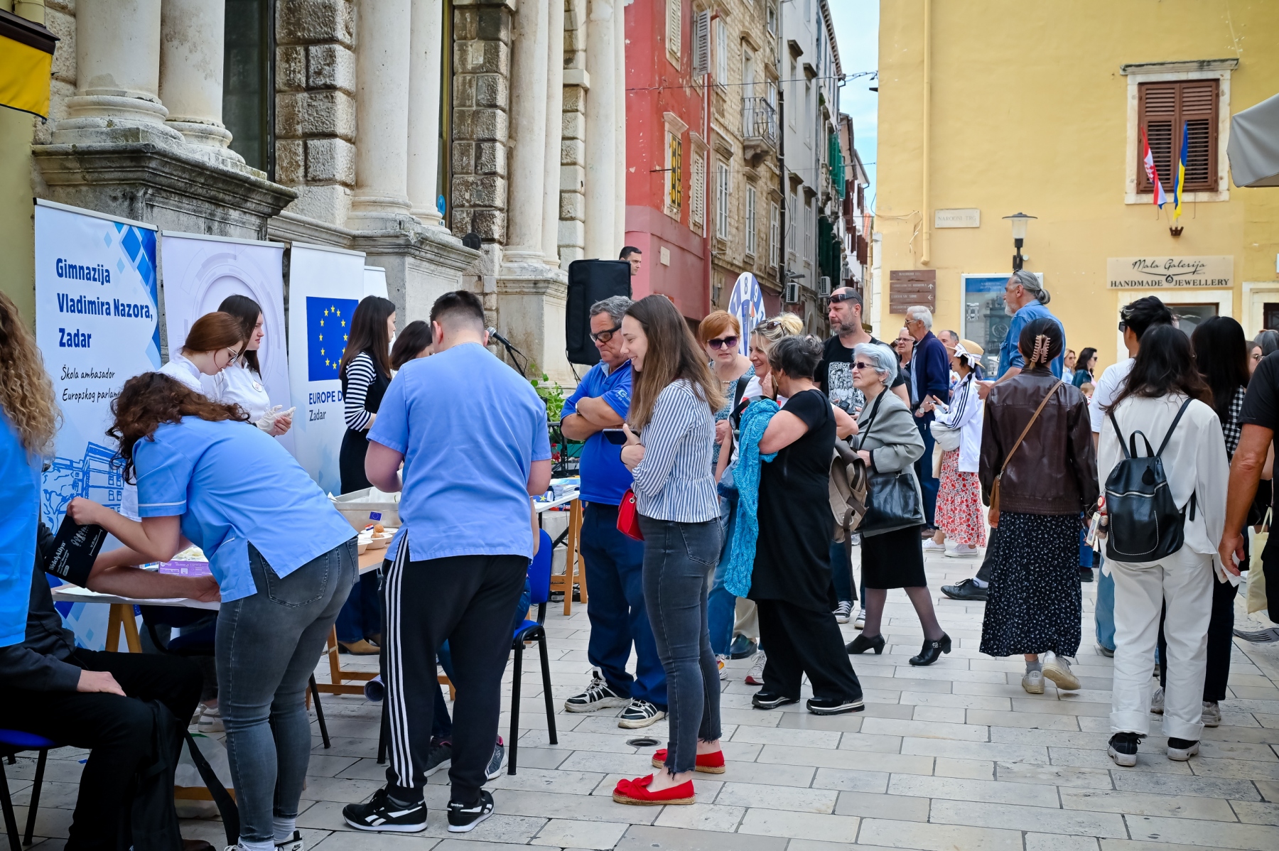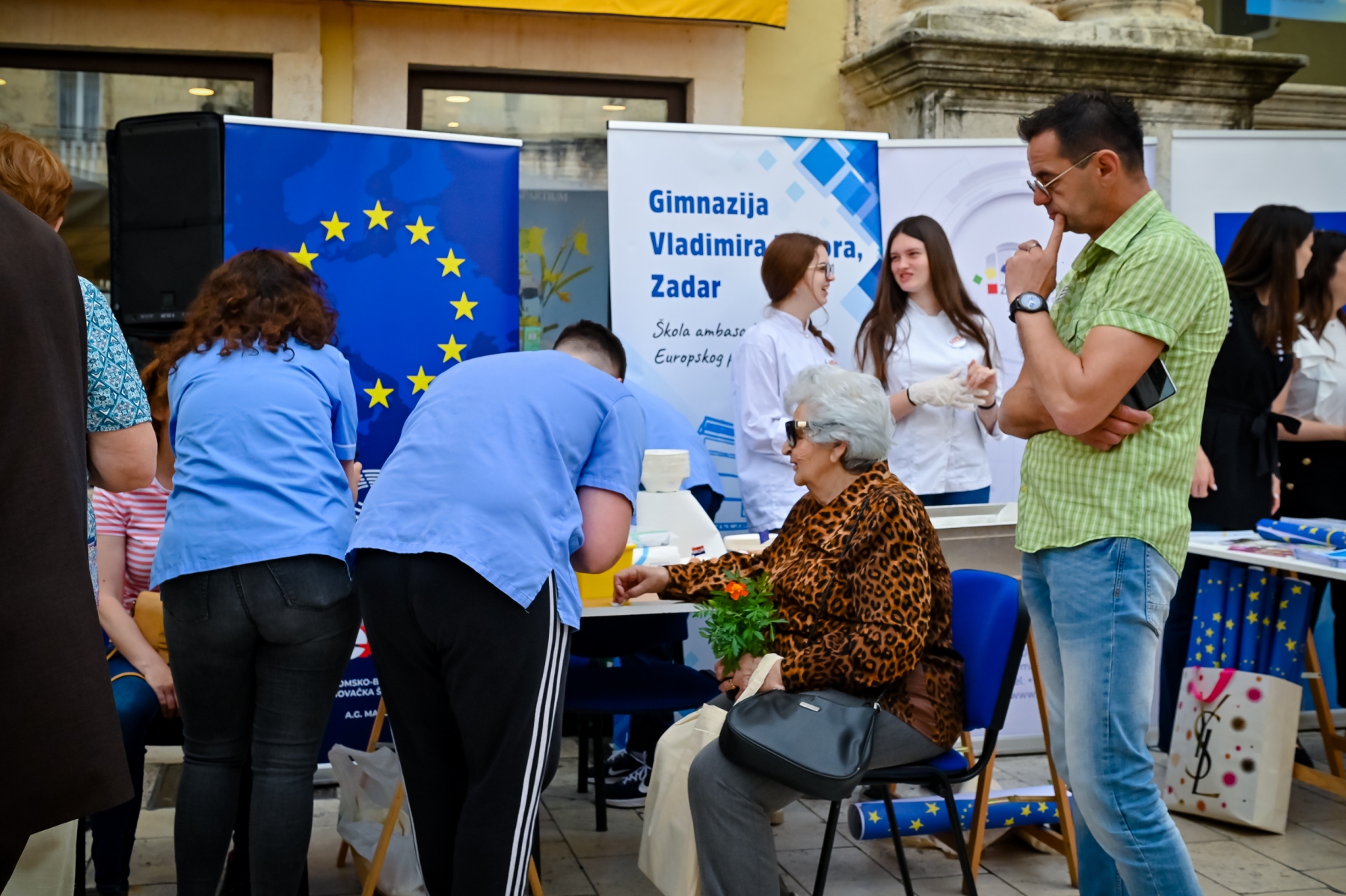 Učenici iz škola ambasadora Europskog parlamenta i tim centra EUROPE DIRECT Zadar građanima su dijelili EU publikacije te prigodne poklone i iznenađenja, a posjetitelji su se mogli okušati i u „kolu sreće“ u kojem nitko nije otišao „praznih ruku“. U skladu s proljetnom atmosferom okupljeni su imali priliku osvojiti i sadnice cvijeća koje su uzgojili učenici Poljoprivredne, prehrambene i veterinarske škola Stanka Ožanića Zadar. Kod učenika Medicinske škole Ante Kuzmanića Zadar posjetitelji su mogli izmjeriti tlak i glukozu u krvi te se osladiti domaćim fritulama koje su pripremili učenici Hotelijersko turističke i ugostiteljske škole Zadar.