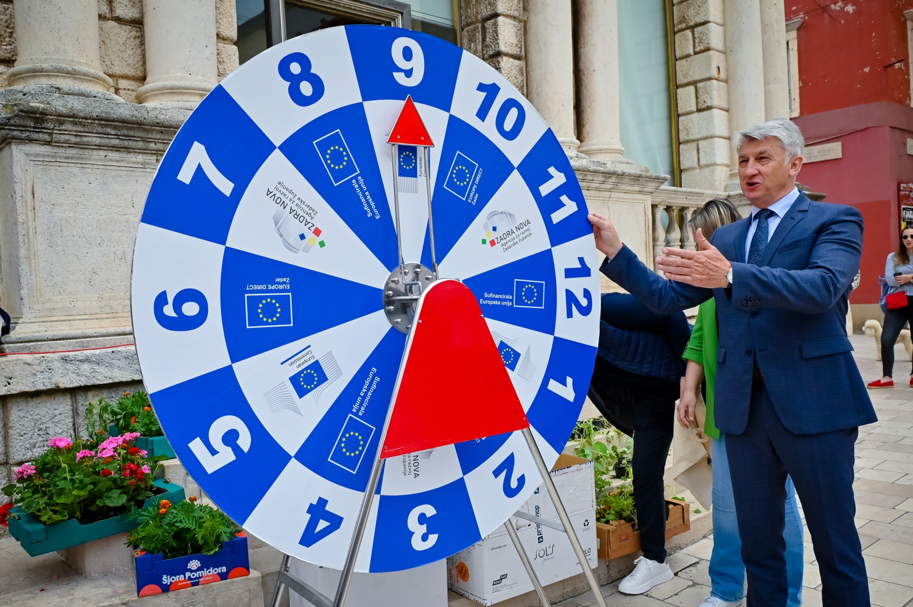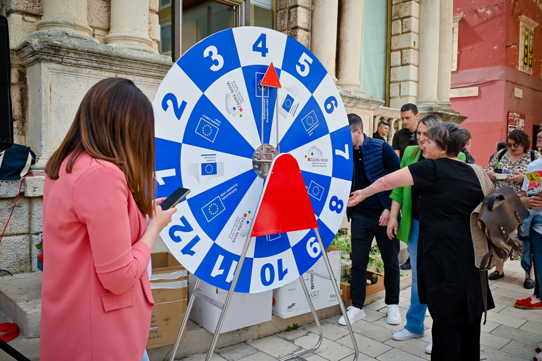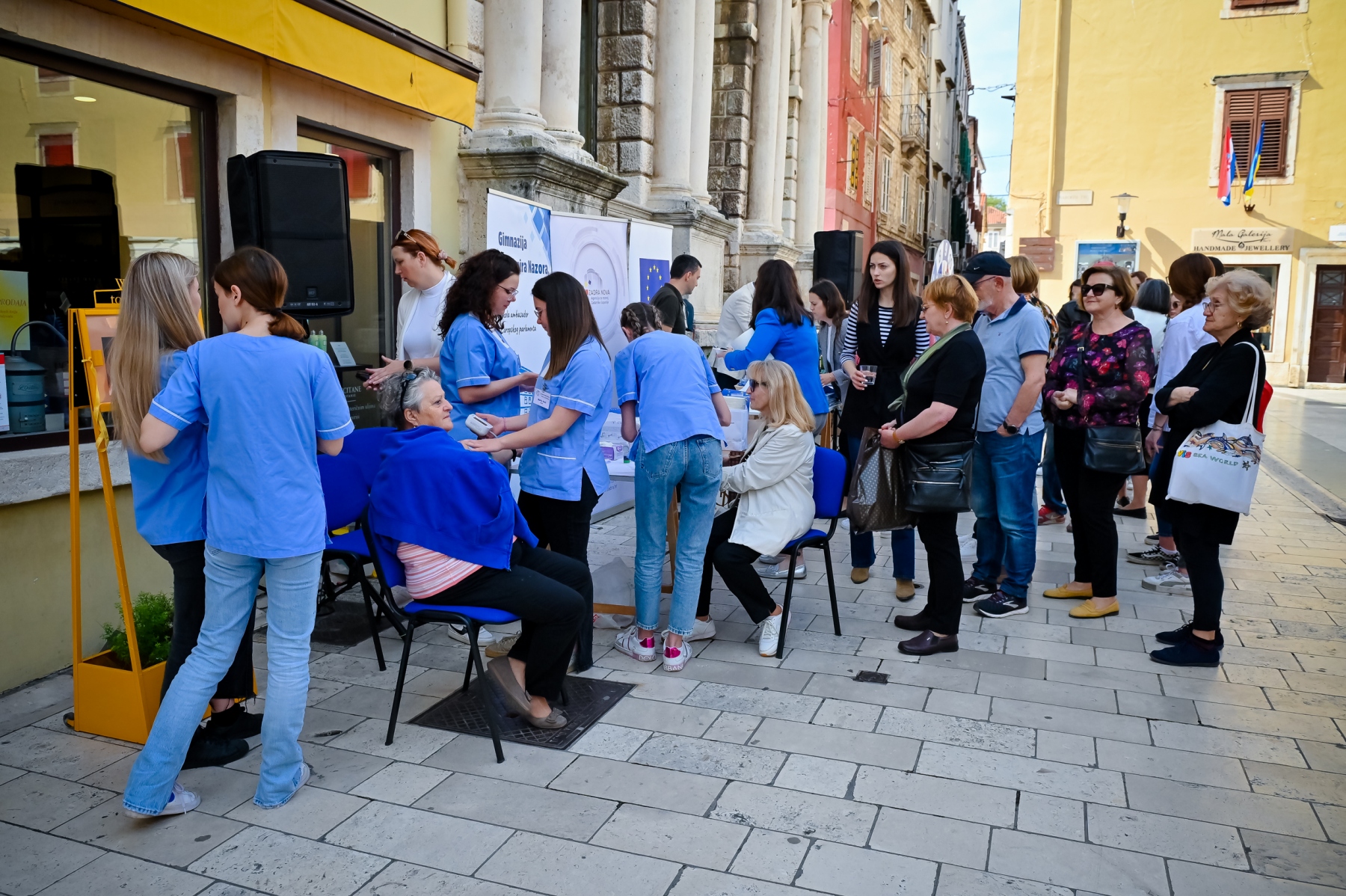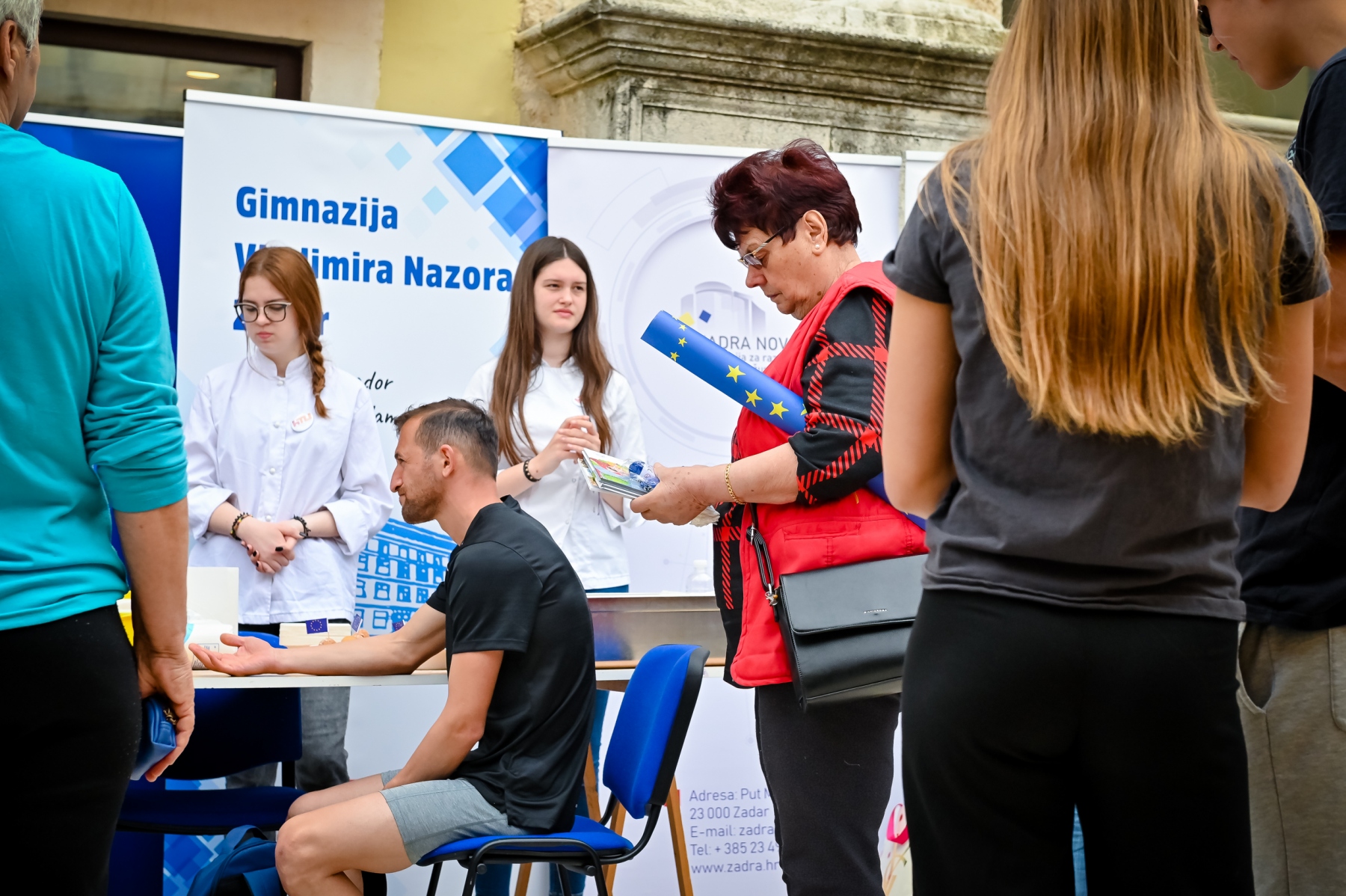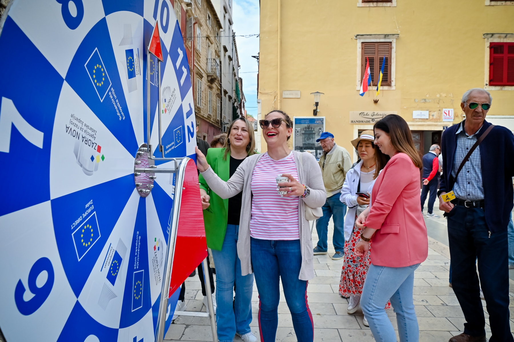Učenici iz škola ambasadora Europskog parlamenta i tim centra EUROPE DIRECT Zadar građanima su dijelili EU publikacije te prigodne poklone i iznenađenja, a posjetitelji su se mogli okušati i u „kolu sreće“ u kojem nitko nije otišao „praznih ruku“. U skladu s proljetnom atmosferom okupljeni su imali priliku osvojiti i sadnice cvijeća koje su uzgojili učenici Poljoprivredne, prehrambene i veterinarske škola Stanka Ožanića Zadar. Kod učenika Medicinske škole Ante Kuzmanića Zadar posjetitelji su mogli izmjeriti tlak i glukozu u krvi te se osladiti domaćim fritulama koje su pripremili učenici Hotelijersko turističke i ugostiteljske škole Zadar.