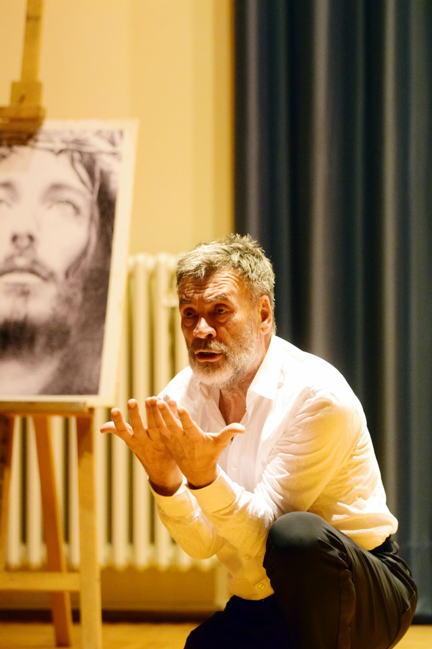 „Selidba“ predstave iz dvorišta Barbakana u Svečanu dvoranu nije omela maestralnog Ševu u interpretaciji starih i suvremenih pjesama i tektova hrvatske baštine i književnosti, počevši od Bašćanske ploče, Marulića, Držića, do Šoljana, Mihalića, Ujevića, pjesama iz Domovinskog rata…