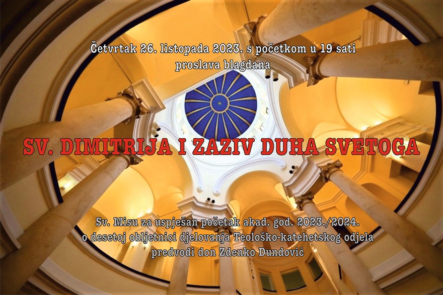Sveučilište u Zadru i Teološko-katehetski odjel pozivaju na proslavu blagdana svetog Dimitrija i svetu misu zaziva Duha Svetoga, Veni Sancte Spiritus, za akademsku godinu 2023./2024.