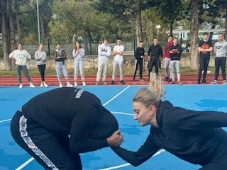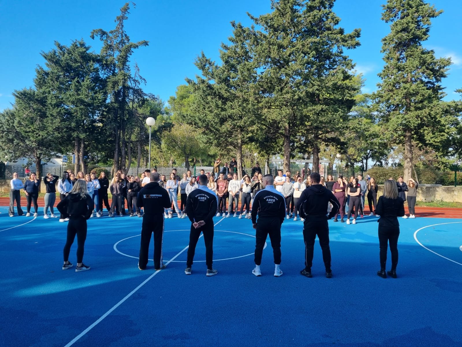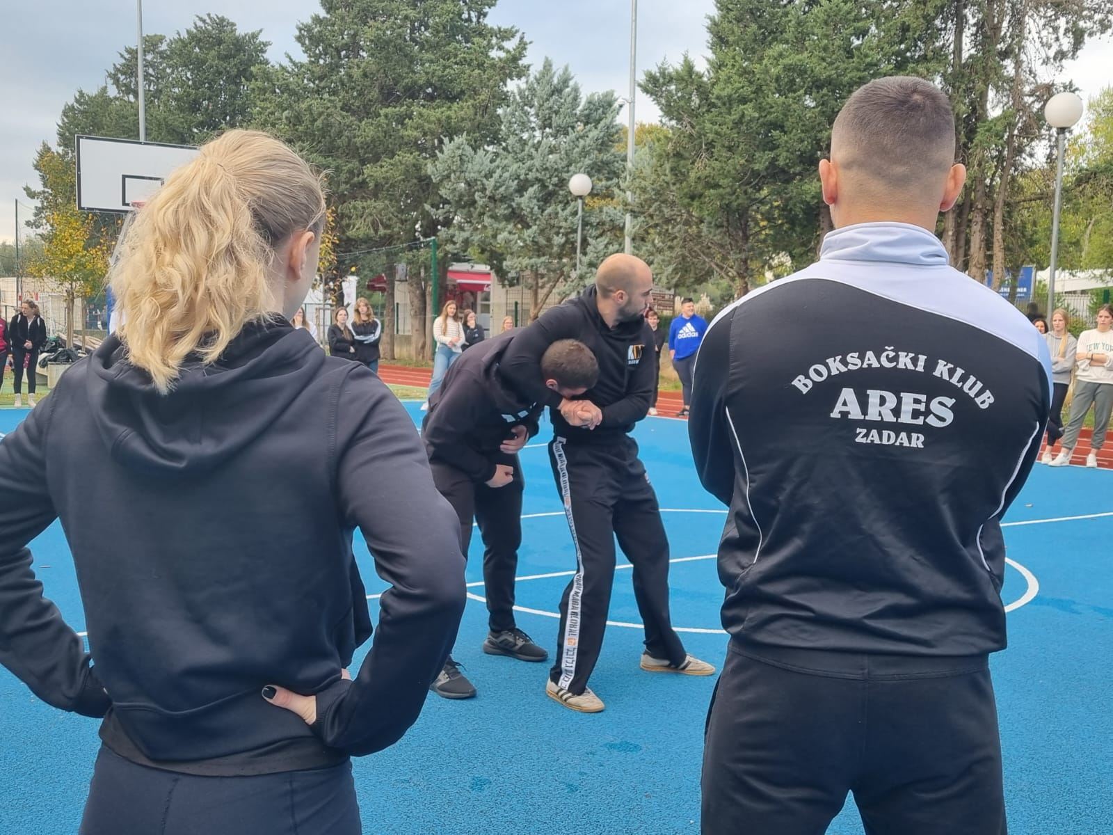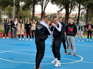 Ekonomsko – birotehnička i trgovačka škola nastavlja s obilježavanjem kampanje „16 dana aktivizma protiv nasilja nad ženama“ te aktivnostima predviđenim u sklopu školskog preventivnog programa i projekta „Sadionica govori o femicidu“. U srijedu 15. studenog održana je prva pokazna vježba samoobrane koju su učenicima predstavili instruktori boksačkog kluba Ares, Nikola Marketin i Vedran Bajlo te instruktor Krav Maga iz Udruge Combat Centar Zadar, Mile Romić sa suradnicima. Cilj susreta bio je upoznati učenike s načinima prepoznavanja potencijalnog sukoba te prevencije napada, ali i uvježbavanje osnovnih tehnika samoobrane od najčešćih oblika napada, kao i obranu od znatno snažnijeg napadača. Aktivnosti su organizirane na sportskom igralištu škole što je omogućilo da učenici uz vodstvo instruktora aktivno sudjeluju u svim vježbama.