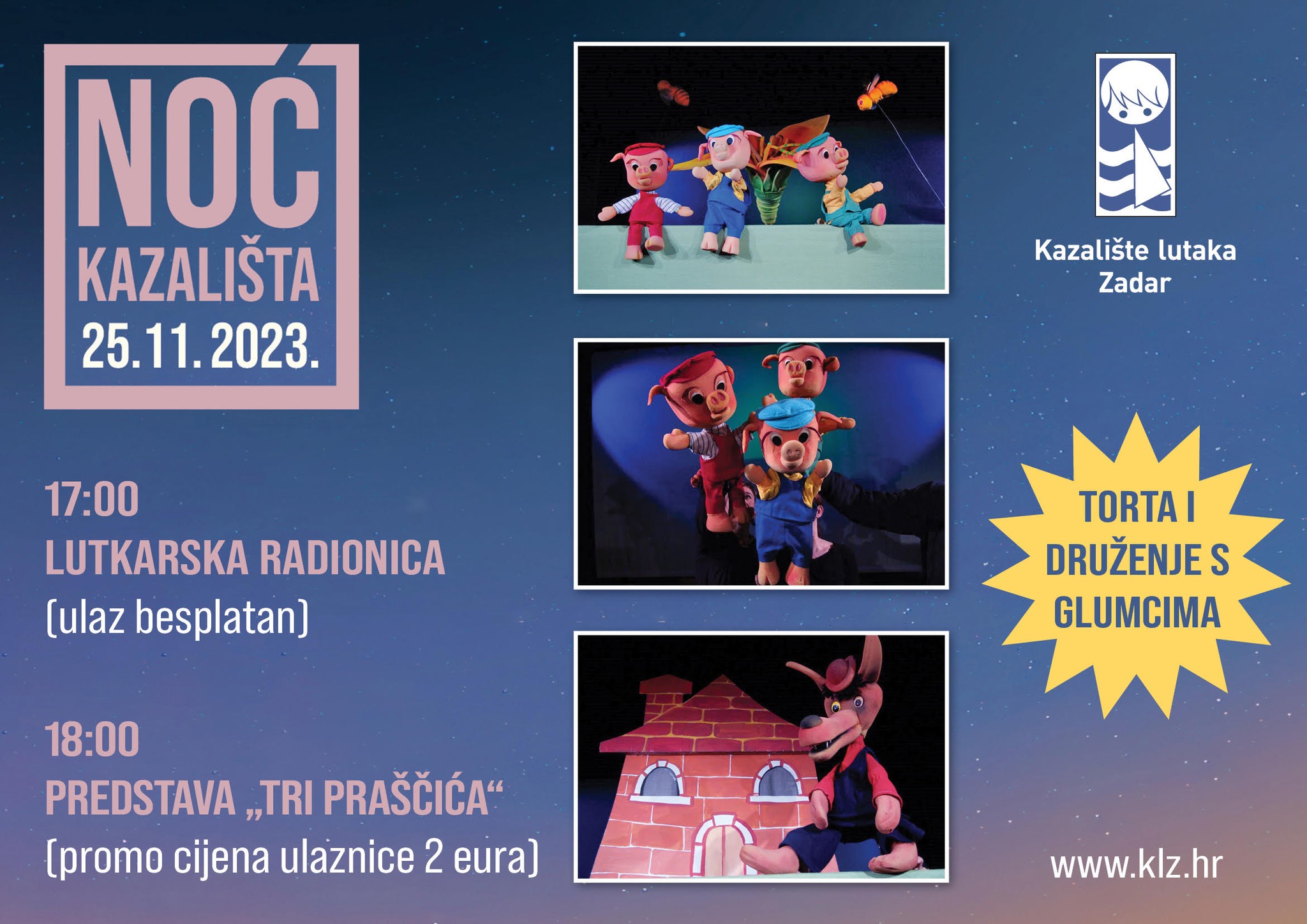NOĆ KAZALIŠTA U KAZALIŠTU LUTAKA ZADAR: Besplatna lutkarska radionica i “Tri praščića” za 2 eura