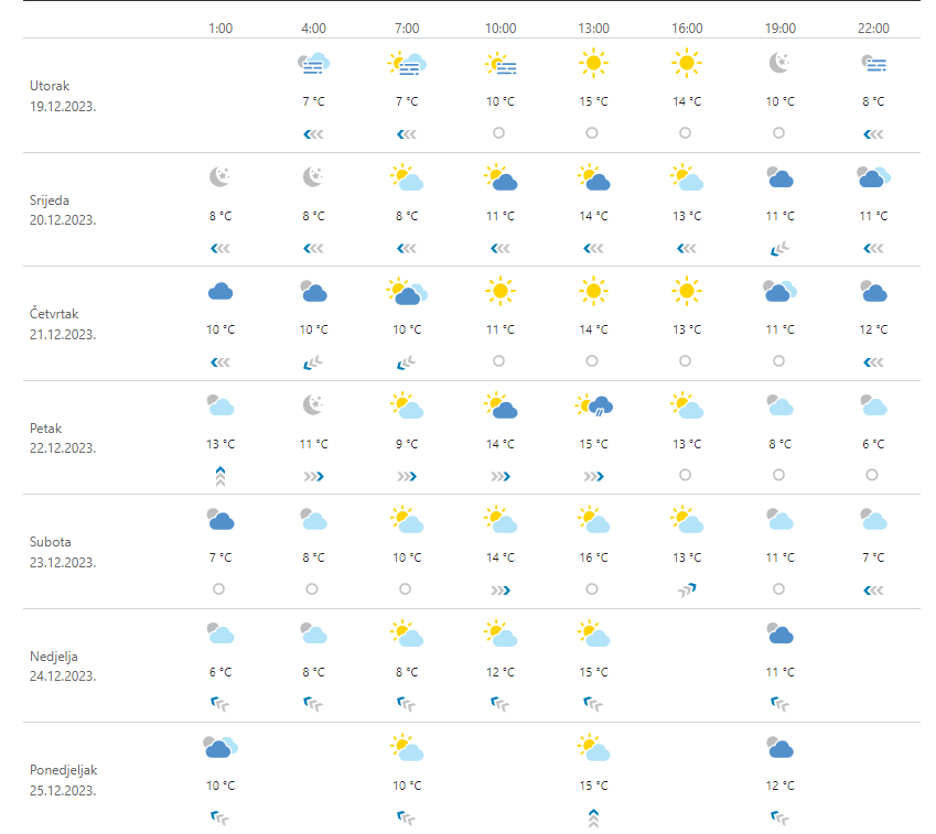 PROGNOZA / U četvrtak i petak moguće malo kiše. Za Badnji i Božić sunčano uz iznadprosječne temperature