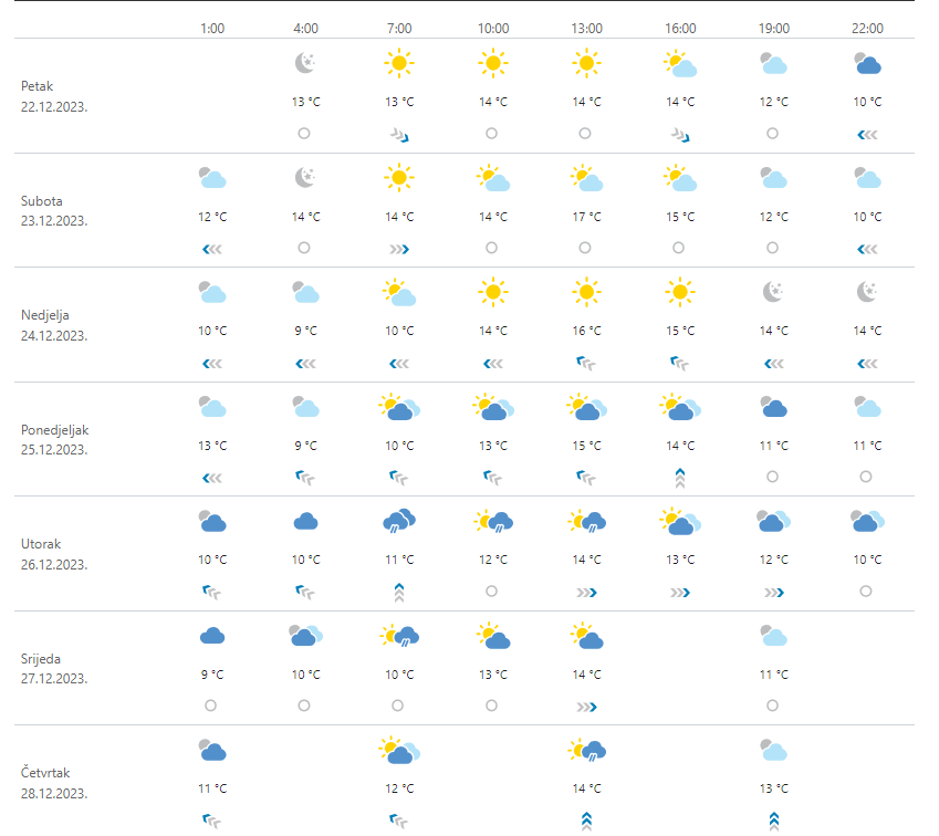 PROGNOZA / Na Badnji dan i Božić sunčano i toplo. Od utorka kiša