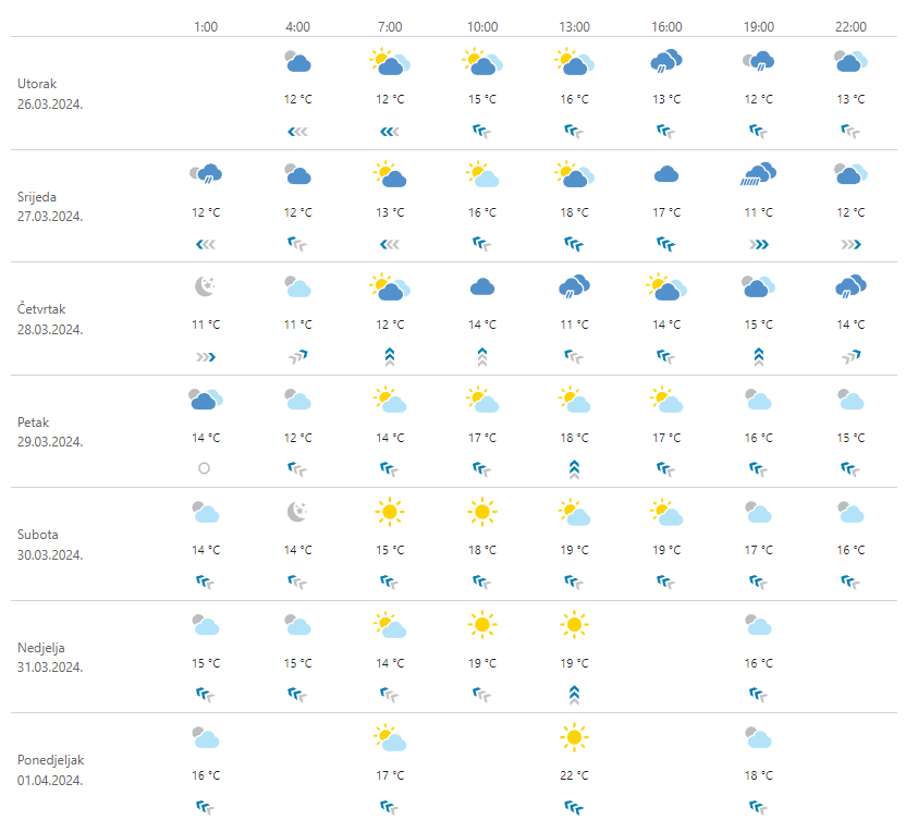 PROGNOZA / Oblaci i kiša do Velikog petka. Za vikend sunce, olujno jugo i temperatura iznad 22°C