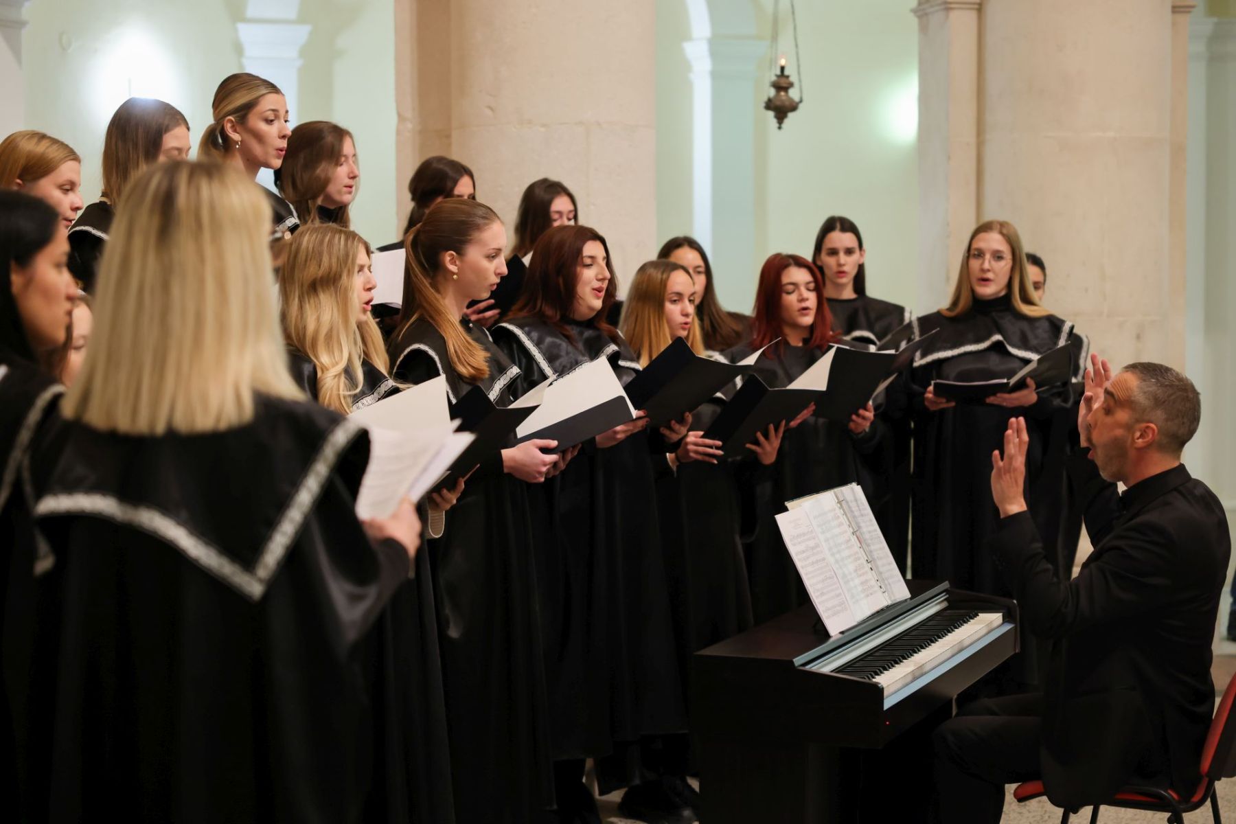 Koncert je otvorio Akademski pjevački zbor Sveučilišta u Zadru, koji je za ovu večer pripremio skladbe Pelestrine, Lisinskog, duhovnu pjesmu „This Little Light of Mine“ te tradicionalnu južnoafričku pjesmu Siyahamba. Studentski sastav Študija predstavio se Runjićevim evergreenima „Četiri stađuna“ i „Ključ života“: „Kaletom“ Tome Bebića i tradicionalnom klapskom pjesmom „Golubice ča u gajbi stojiš“.
