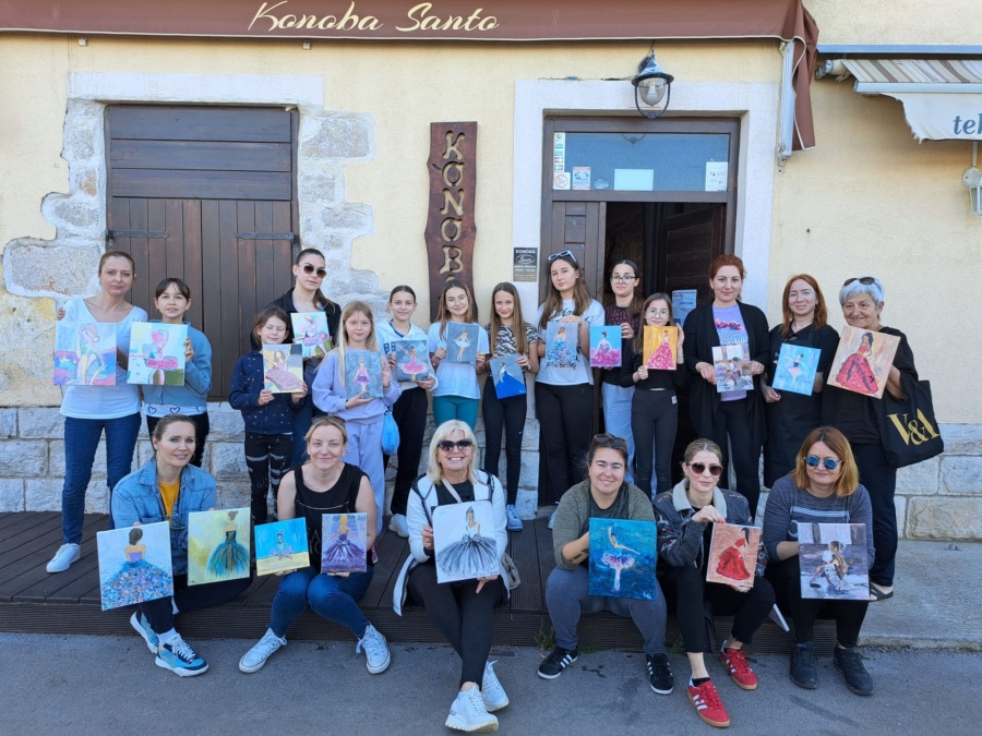 Udruga za promicanje ritmike i plesa TIM iz Preka održala je na terasi konobe Šanto u Preku radionicu Plesno platno Županiji na dar.