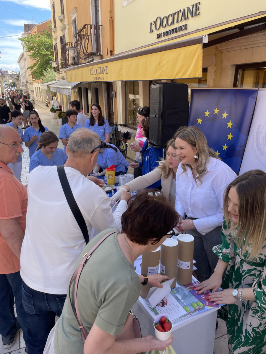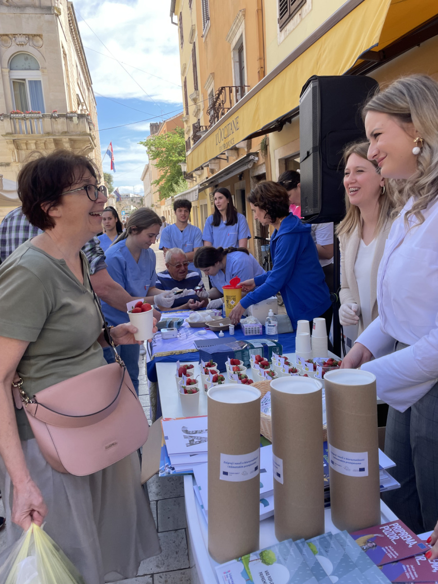 Učenici iz škola ambasadora Europskog parlamenta i tim centra EUROPE DIRECT Zadar građanima su dijelili EU publikacije te prigodne poklone i iznenađenja, a posjetitelji su se mogli okušati i u „kolu sreće“ u kojem nitko nije otišao „praznih ruku“. U skladu s proljetnom atmosferom okupljeni su imali priliku osvojiti i sadnice cvijeća te se osladiti domaćim jagodama iz zadarskog zaleđa.