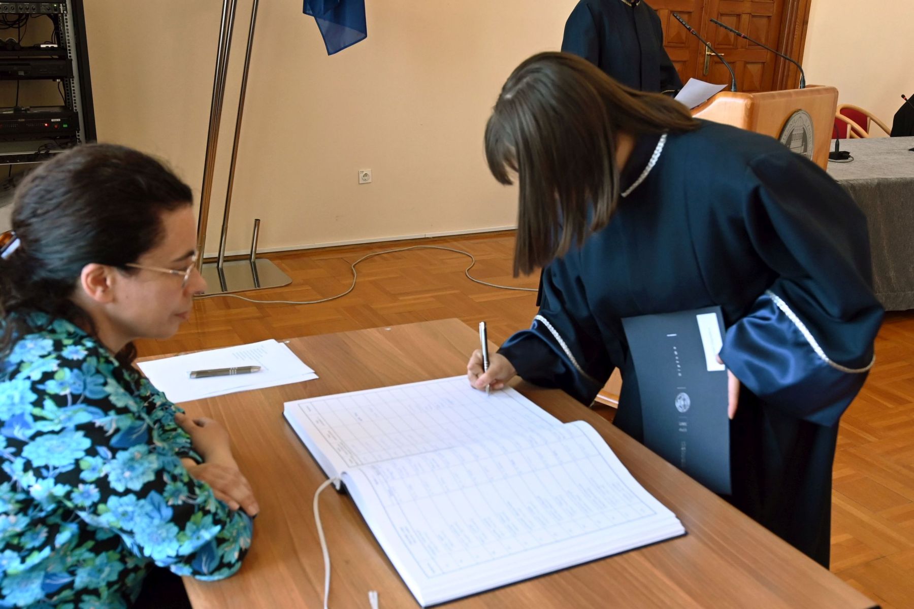 Nakon svečane prisege v. d. pročelnice Odjela za anglistiku prof. dr. sc. Sanja Škifić podijelila je diplome nazočnim promoventima.