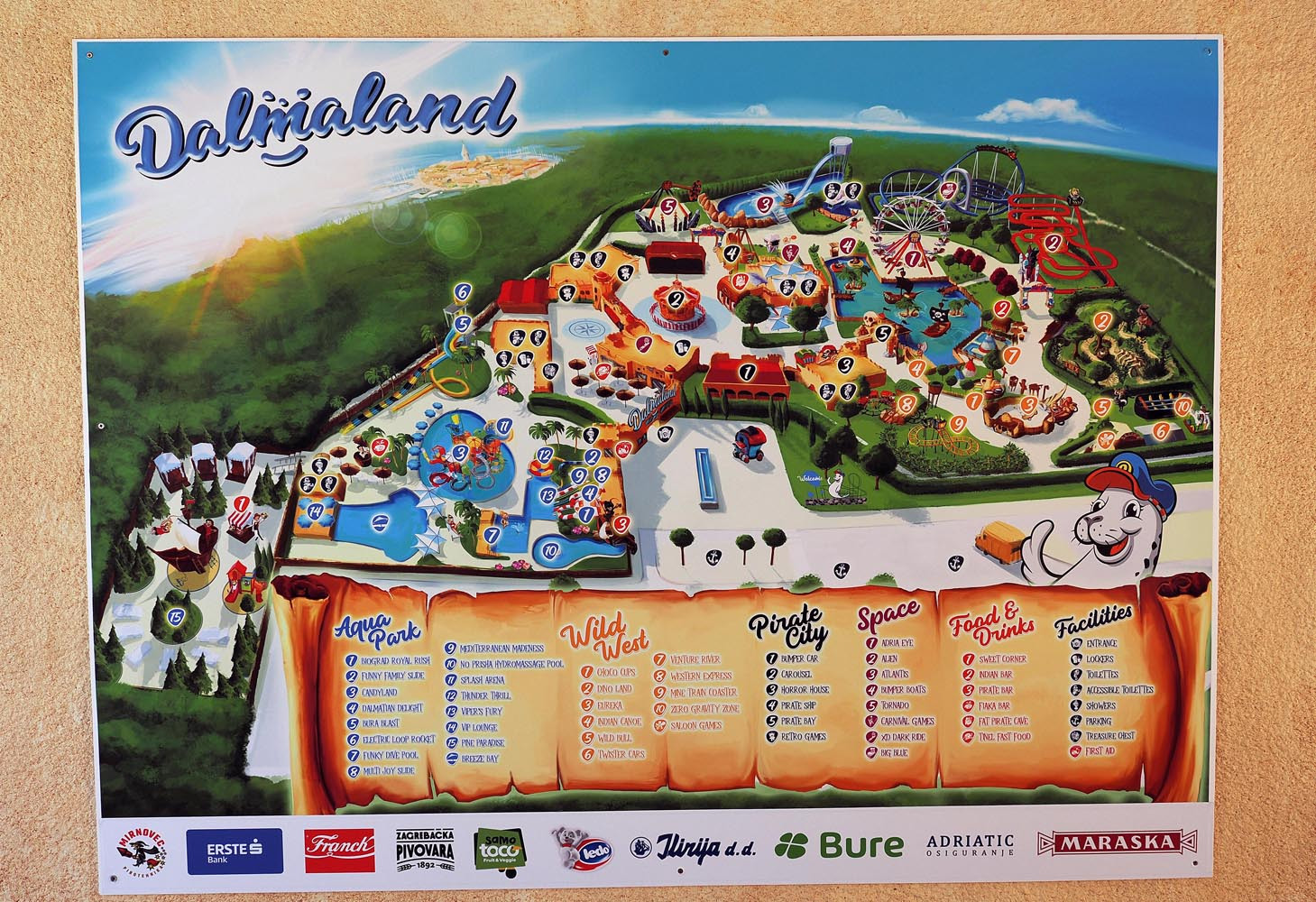 “Park je podijeljen na nekoliko tematskih zona, uključujući adrenalinske rollercoastere, Ferris Wheel, spinning coaster, horror house, Tornado i brojne vodene atrakcije poput tobogana Atlantis. U vodenom dijelu parka nalaze se tobogani različitih visina i intenziteta spuštanja. S ponosom mogu reći kako Dalmaland kontinuirano širi svoje kapacitete, a trenutno radi na proširenju aqua parka s novim bazenima i toboganima” – kaže nam direktor marketinga Dalmalanda Ivan Bobanović pokazujući i novu, relax zonu koja je od danas dostupna svim posjetiteljima.