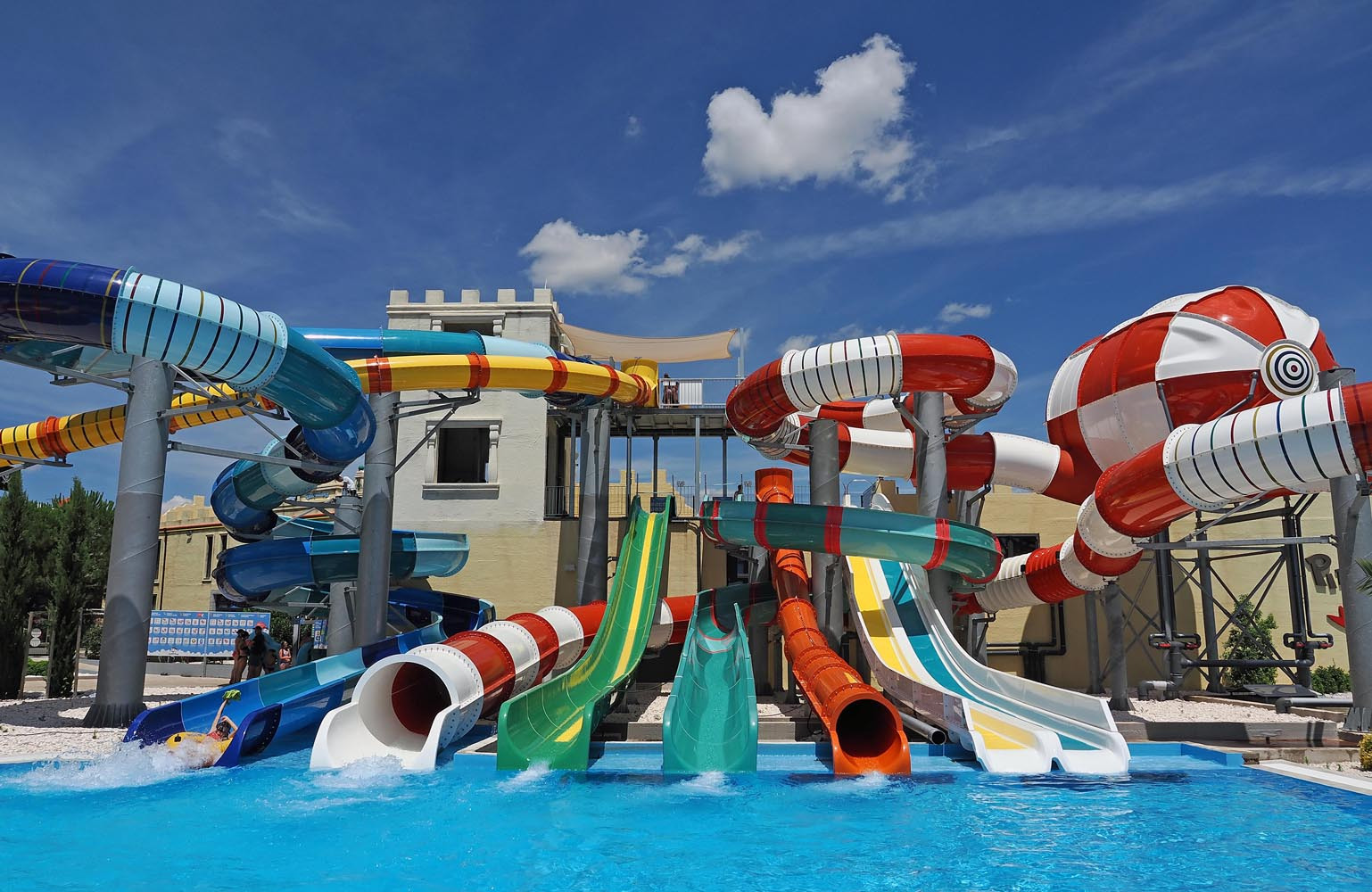 U to ćete se uvjeriti čim prođete glavni ulaz. Na mapi pogledajte kako je park podijeljen, potražite oznake koje vam otkrivaju koji dio parka posjetiti s djecom a u čemu možete uživati sami. Uz to, u parku ćete pronaći prsluke za zaštitu mališana dok su u vodi, ali i suncobrane, ležaljke i sve ono što vam je potrebno kako bi se zaklonili od sunca. Odjeću možete odložiti u ormarićima koji se nalaze na ulazu, a kad uđete u ovaj adrenalinski raj znajte da ćete moći uživati i u hrani i piću.