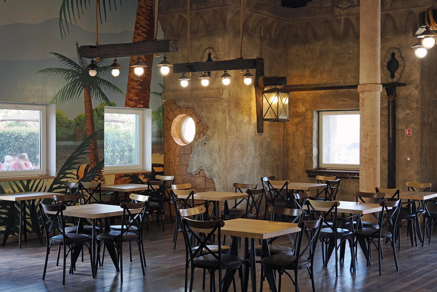 Po uzoru na svjetski poznate adrenalinske parkove i u Dalmalandu ne nedostaje kornera na kojima ćete uživati u osvježavajućim pićima, finoj hrani kreiranoj tako da se razlikuju dječji tanjuri od onih za odrasle. Caffe Bar Tinel tako nudi veliki izbor osvježavajućih pića (isprobajte koktel Dalmacija u mom soku), sladolede i finu kavu, Pirates restoran je mjesto gdje ćete ručati birajući jedan od 15 posebno osmišljenih tanjura. Za mališane tu su popularni pohanci i pommes, fini burgeri i pizza, a za odrasle tanjuri na kojima se može naći i riba. U ovom restoranu možete pronaći i veganske tanjure. Ručak ili večeru zasladite ručno rađenim slasticama čija je selekcija okusa i u Sweet House kućici u novootvorenom Pine Paradise dijelu parka.
