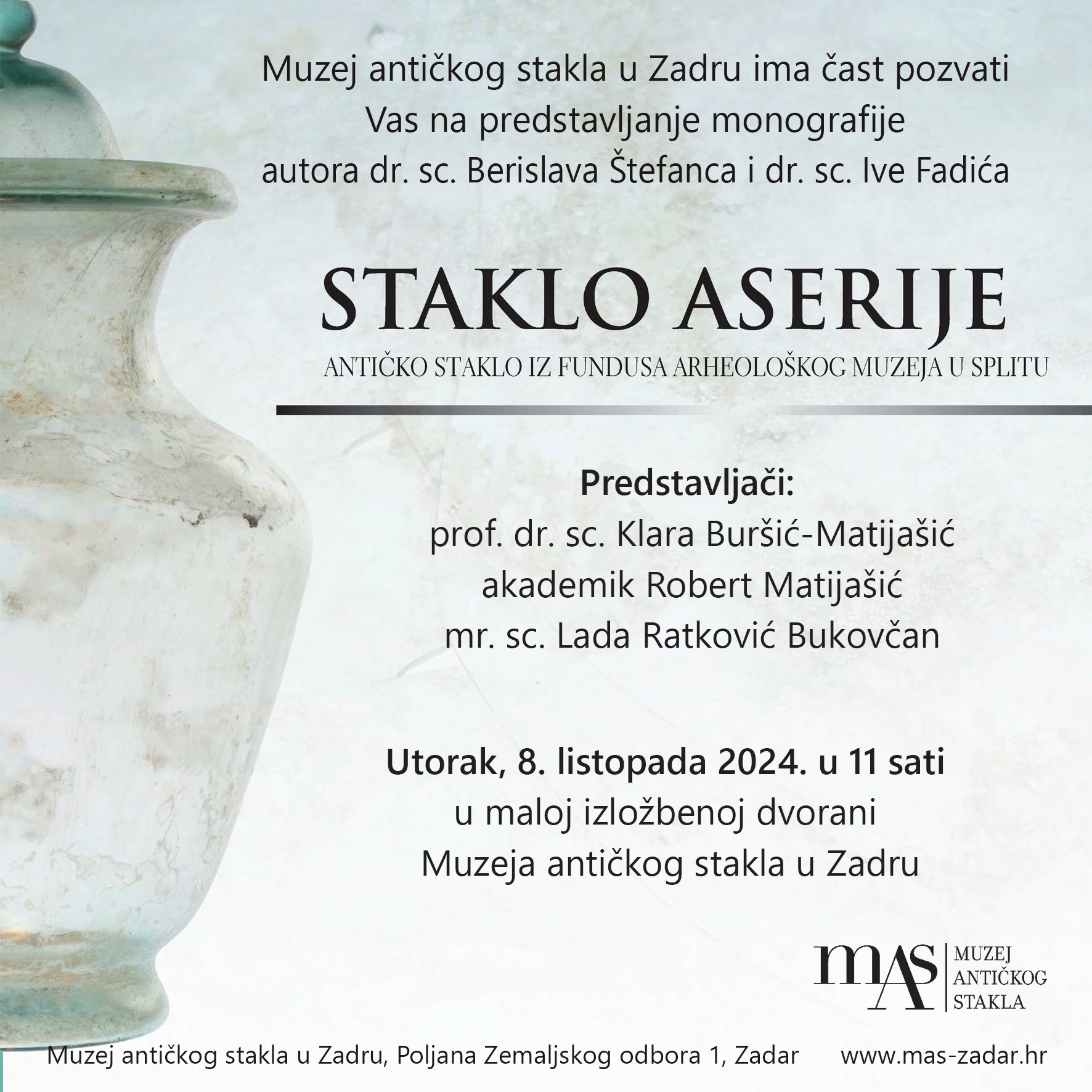 MAS: Predstavljanja monografije “Staklo Aserije – Antičko staklo iz fundusa Arheološkog muzeja u Splitu”