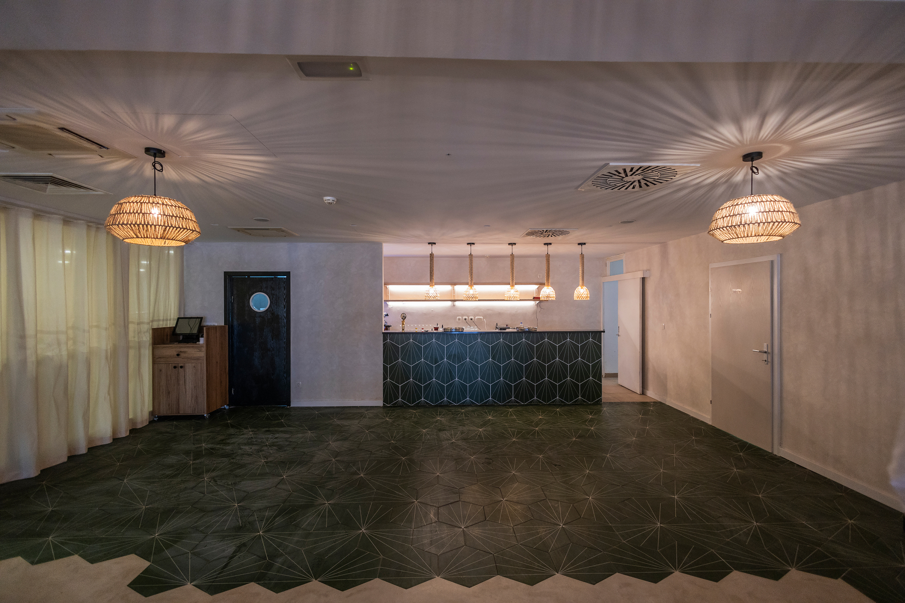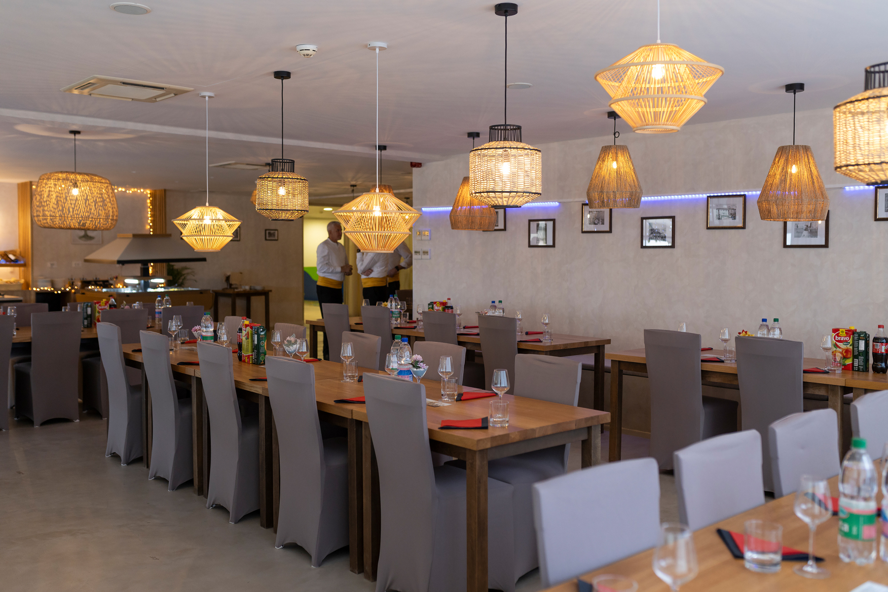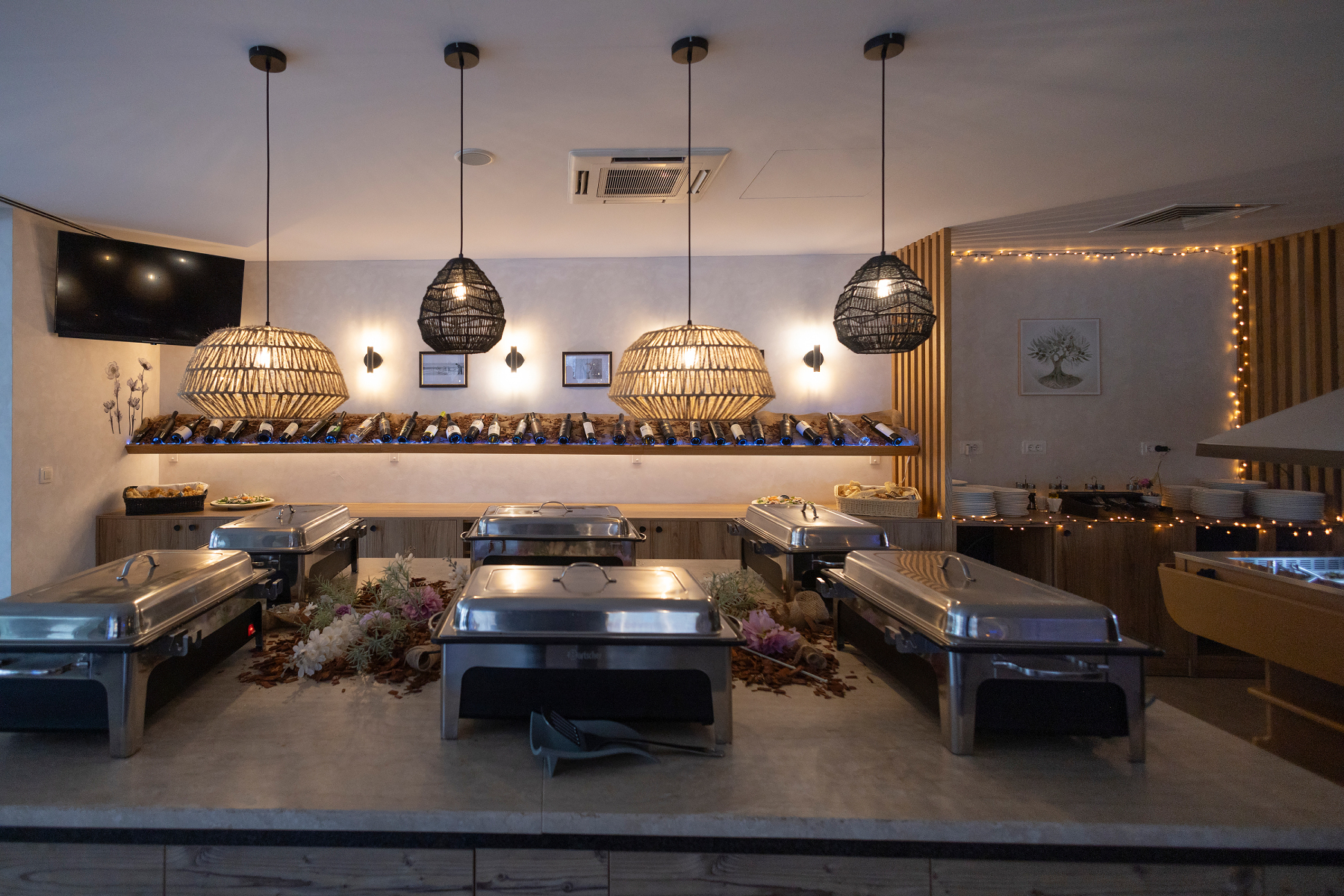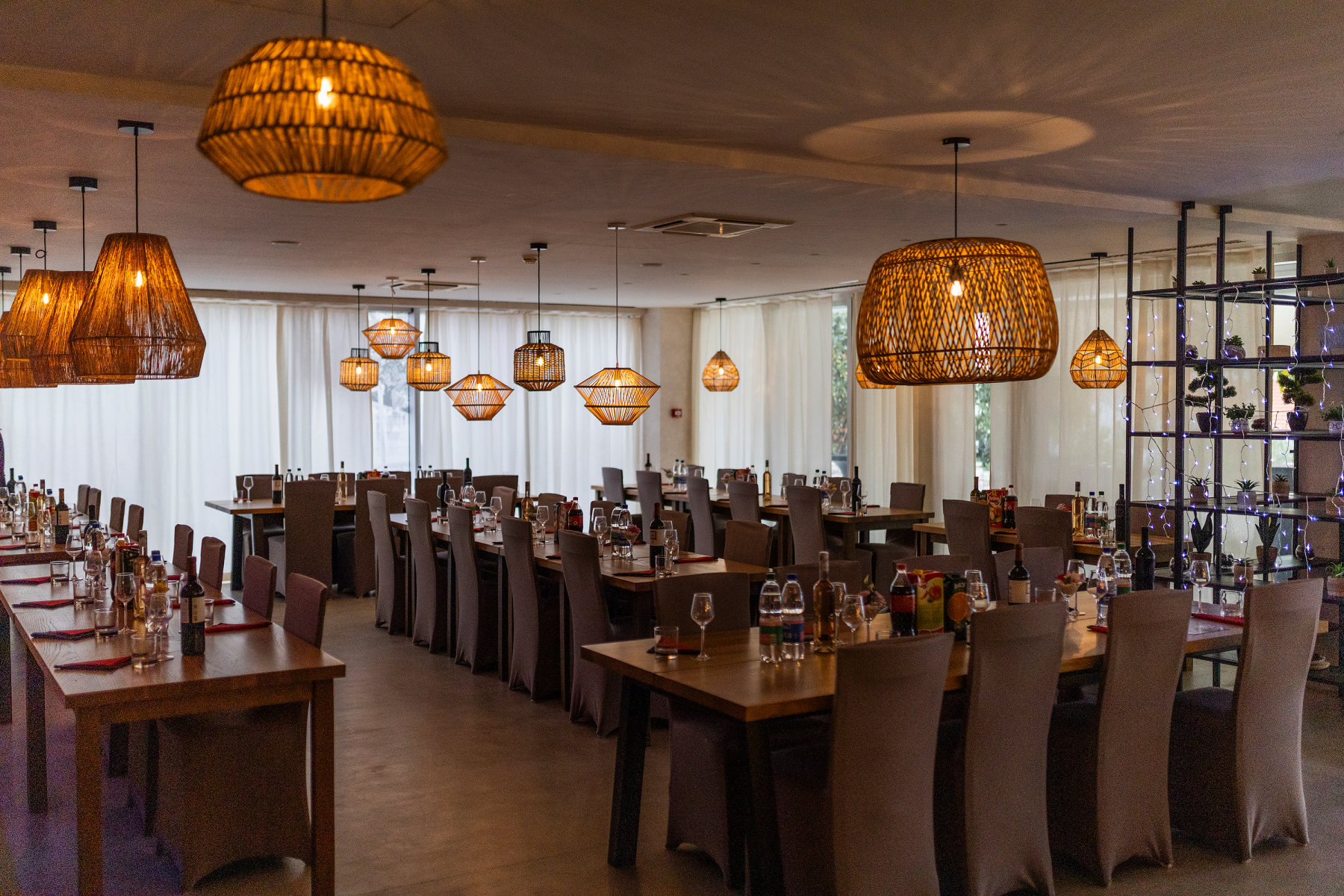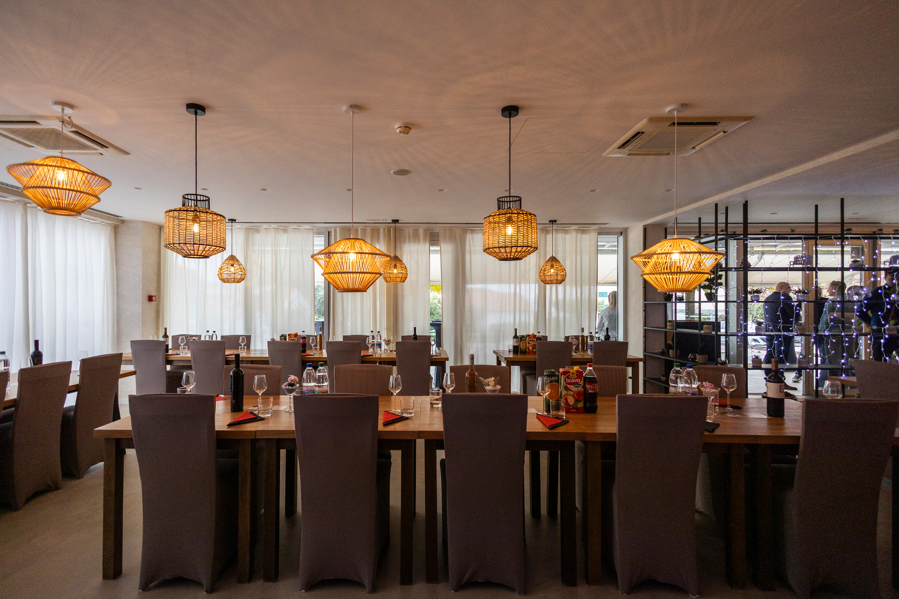 Sala za evente Rukola nudi ugodan i elegantan ambijent koji je savršeno usklađen s opuštajućom atmosferom resorta. Prostor je uređen u modernom stilu, uz korištenje prirodnih materijala i tople palete boja koja stvara ugodnu i opuštajuću atmosferu.
