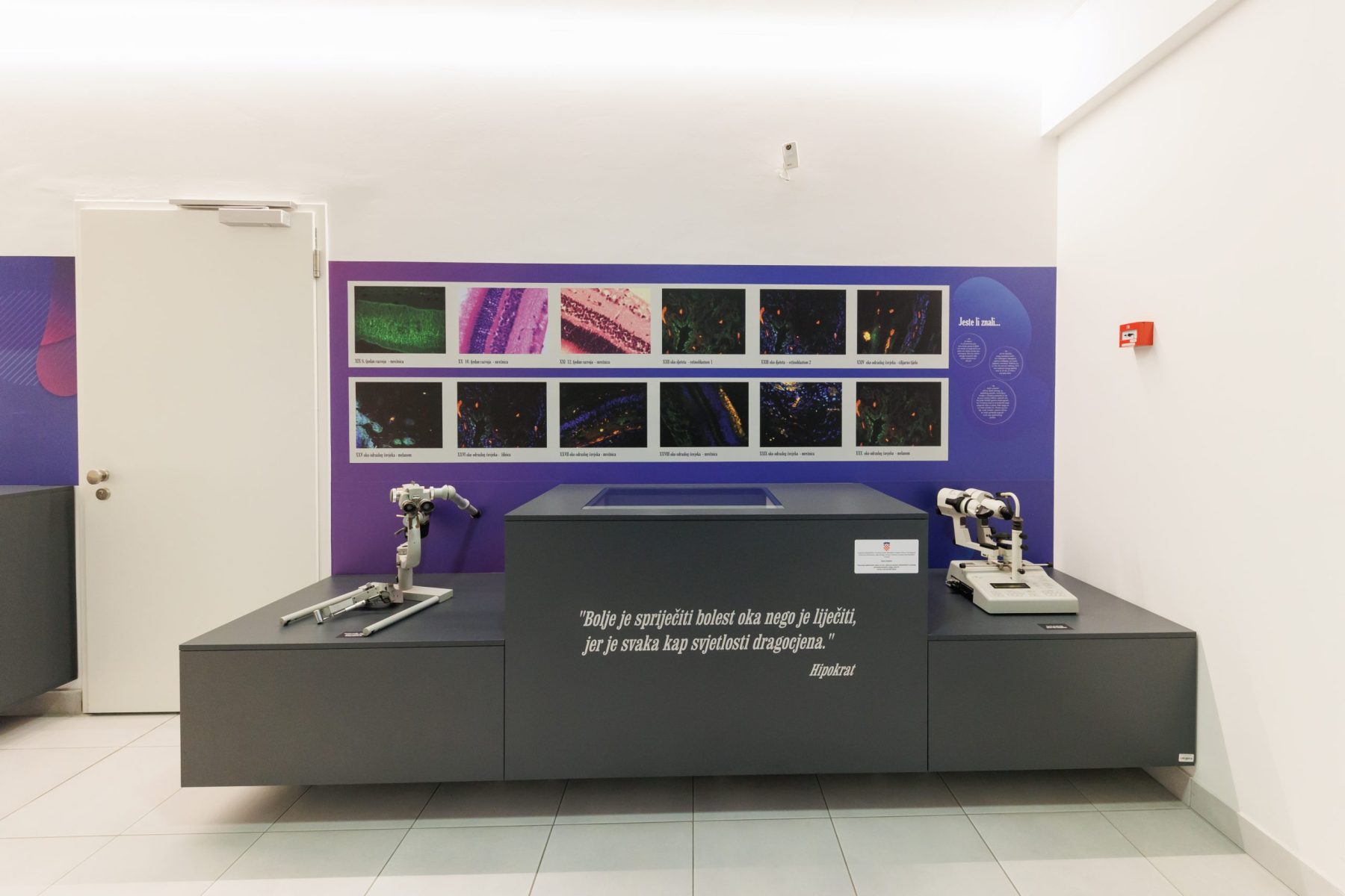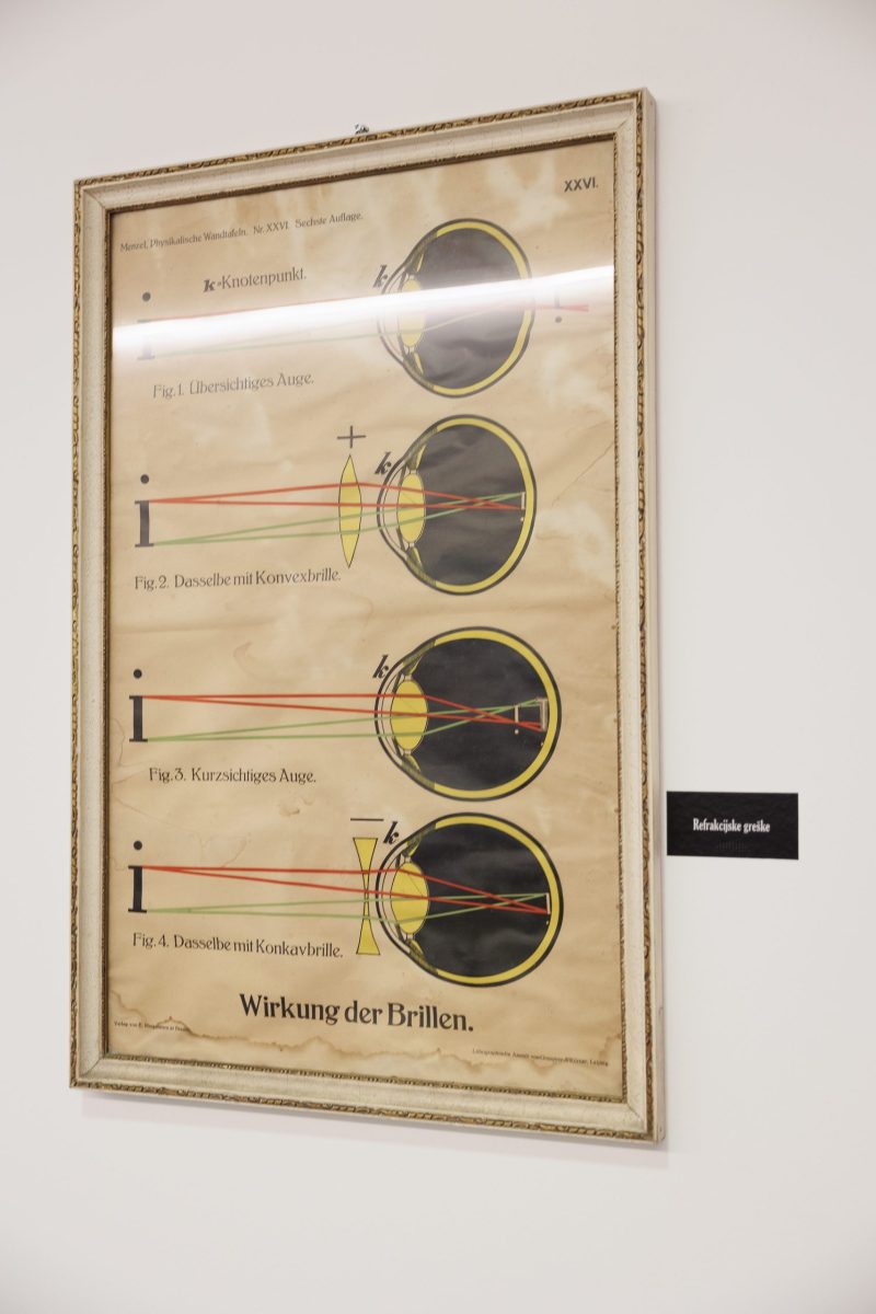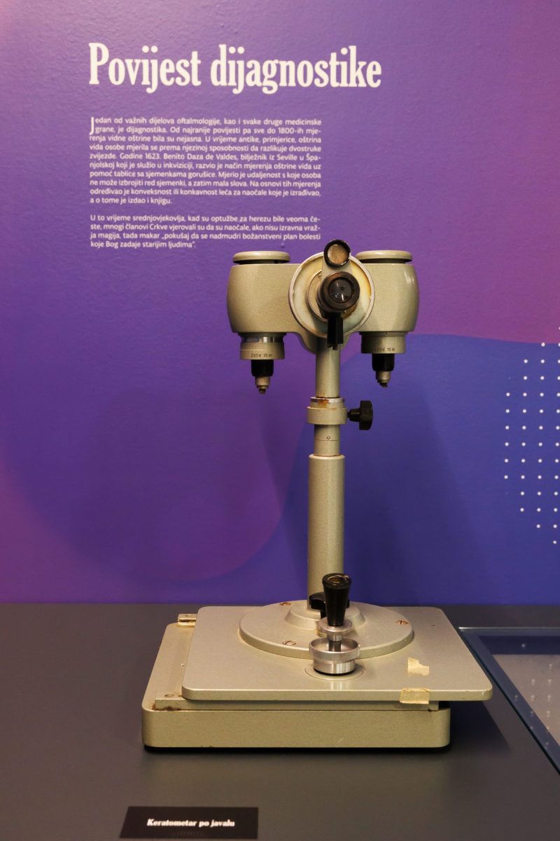 Svi izložbeni eksponati nekada su služili za oftalmološku dijagnostiku kod malih i velikih pacijenata. Ti su uređaji i danas prisutni u oftalmologiji, no u znatno modernijem obliku. Ovi „iz prošlosti“ u bolničkom su podrumu skupljali prašinu da bi sada bili otrgnuti zaboravu, ulašteni i izloženi znatiželjnim pogledima.