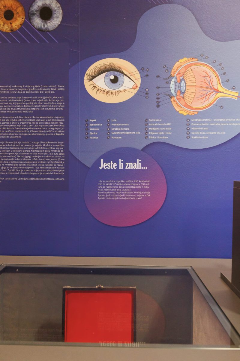 Stalni izložbeni postav oftalmološke građe izložen je na 2.katu Poliklinike Opće bolnice Zadar, tik uz oftalmološke ambulante. Razgledajte i ujedno provjerite svoj vid, jer kako kaže jedna stara izreka: “Brinuti o očima znači čuvati čitav svemir koji nosimo u sebi!”
