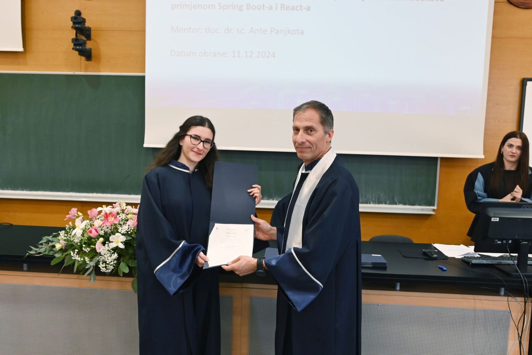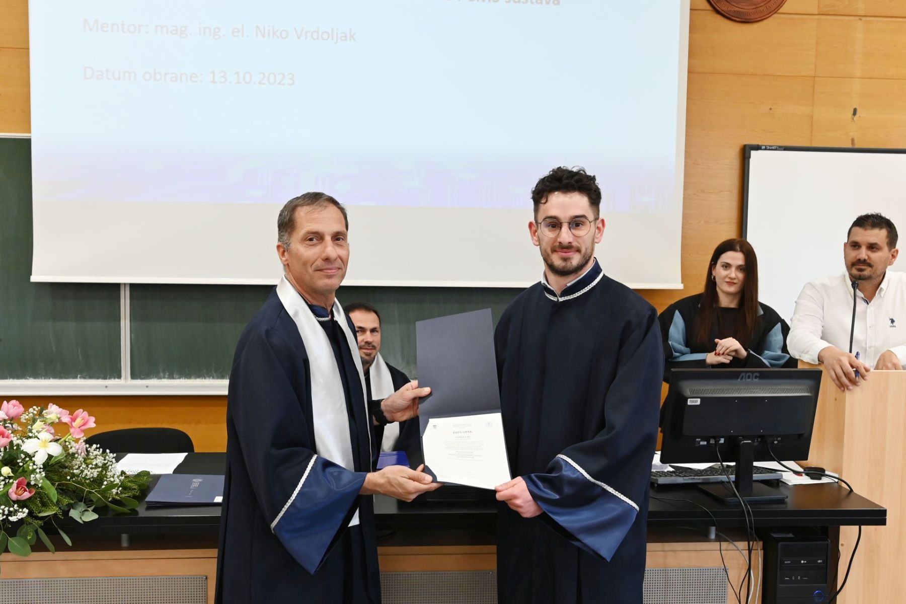 Voditelj združenog stručnog studija Informacijske tehnologije doc. dr. sc. Ante Panjkota čestitao je promoventima na stečenim diplomama, a još više znanjima i vještinama kojima će moći odgovoriti na buduće životne izazove, koji podrazumijevaju stalno usavršavanje.