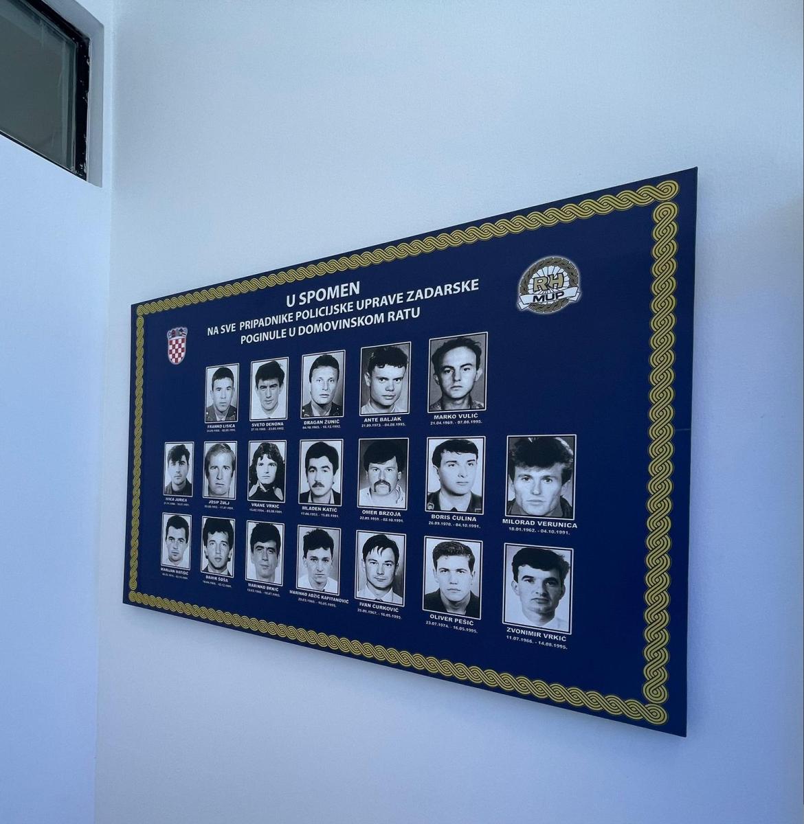 U sklopu obilježavanja Dana hrvatske policije svečano je otvorena i spomen soba poginulim hrvatskim redarstvenicima pripadnicima PU zadarske, mjesto trajnog sjećanja i zahvalnosti. Spomen soba čuva uspomenu na njihova imena i djela te budućim naraštajima svjedoči o cijeni slobode i mira.