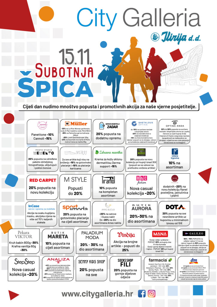 Jesenska „subotnja špica” ovaj vikend stiže u City Galleriju! Već ovu subotu, 15.11. dočekujemo uz mnoštvo promotivnih akcija, popusta i odličnih ponuda koje ne želite propustiti.