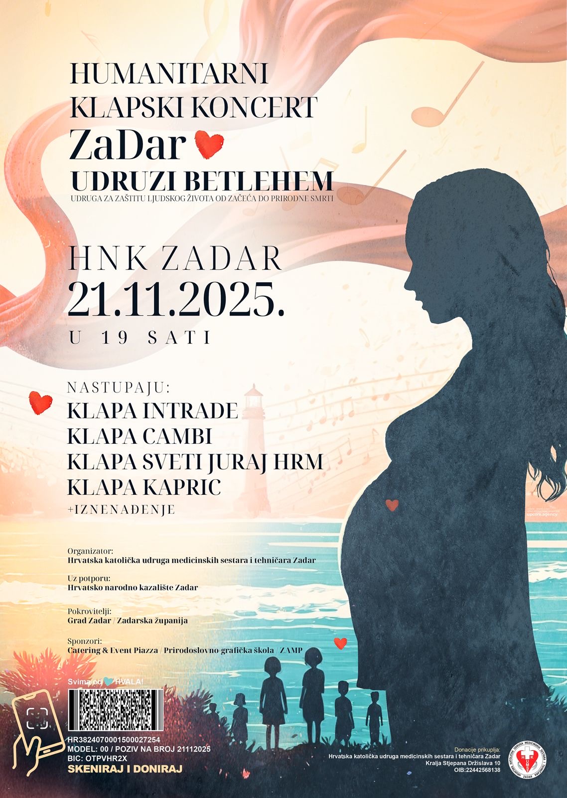 Hrvatska udruga medicinskih sestara i tehničara Zadar organizira veliki humanitarni koncert u svrhu prikupljanja pomoći za Udrugu Betlehem, zajednicu koja već desetljećima pruža utočište trudnicama, majkama i njihovoj djeci — spašavajući na stotine života kroz brigu, smještaj i podršku u najosjetljivijim trenucima.
