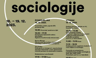 Odjel za sociologiju 18. i 19. prosinca 2023. godine organizira šesti Otvoreni dan sociologije. U ponedjeljak 18. prosinca održat će se izlaganja izvrsnih diplomskih radova s temama...