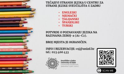 U okviru programa cjeloživotnog učenja Centar za strane jezike Sveučilišta u Zadru počinje s održavanjem tečajeva za građanstvo engleskog, njemačkog, talijanskog, španjolskog i turskog jezika od...