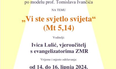 U župi Uznesenja Blažene Djevice Marije na Belafuži u Zadru od 14. do 16. lipnja održat će se trodnevni seminar nove evangelizacije po modelu prof. Tomislava...