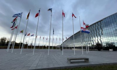 Ispred sjedišta NATO-a u Bruxellesu u petak 18. studenog 2022. hrvatska zastava spuštena je na pola koplja čime je odana počast svim žrtvama Vukovara i Škabrnje...